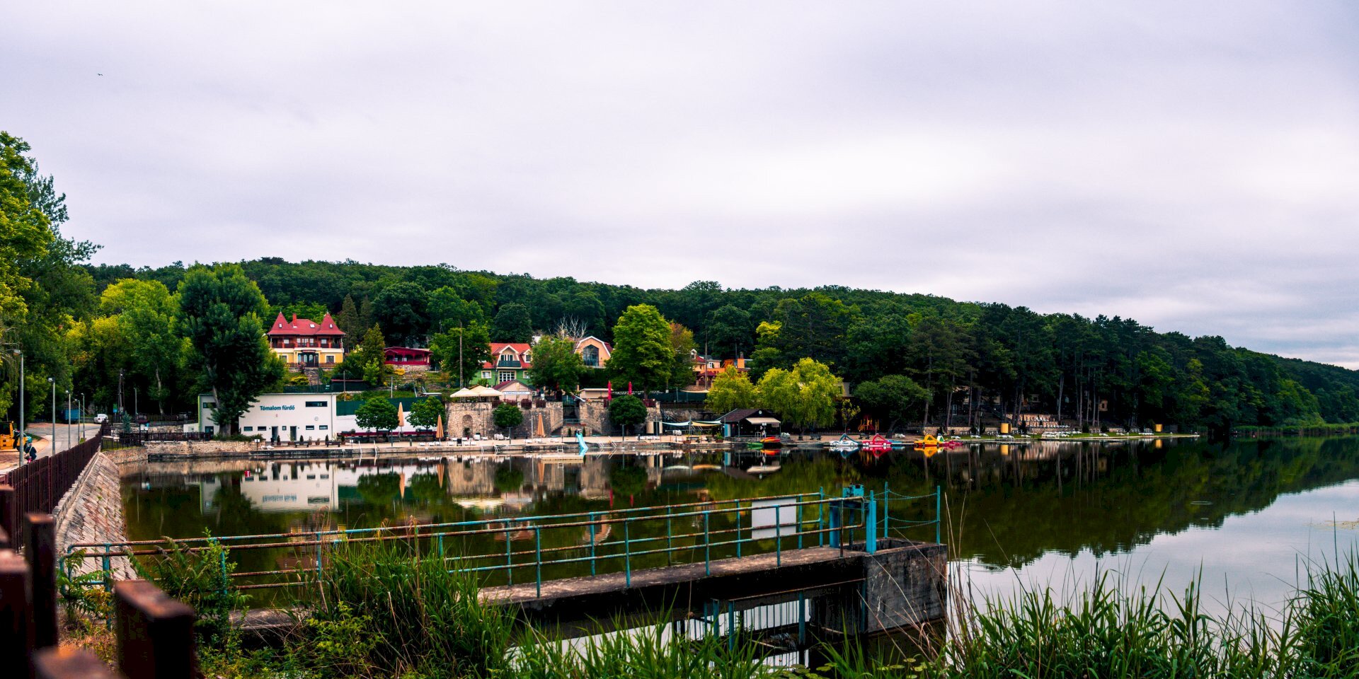 Einrichtungen des BadeteichsTómalom: Badestege und -Terrassen, Duschen, Trinkbrunnen, Kinderbecken mit Rutsche, Spielplatz, Riesenschach, Pergolen, Verleih von Tretboot, Kajaks und Booten.