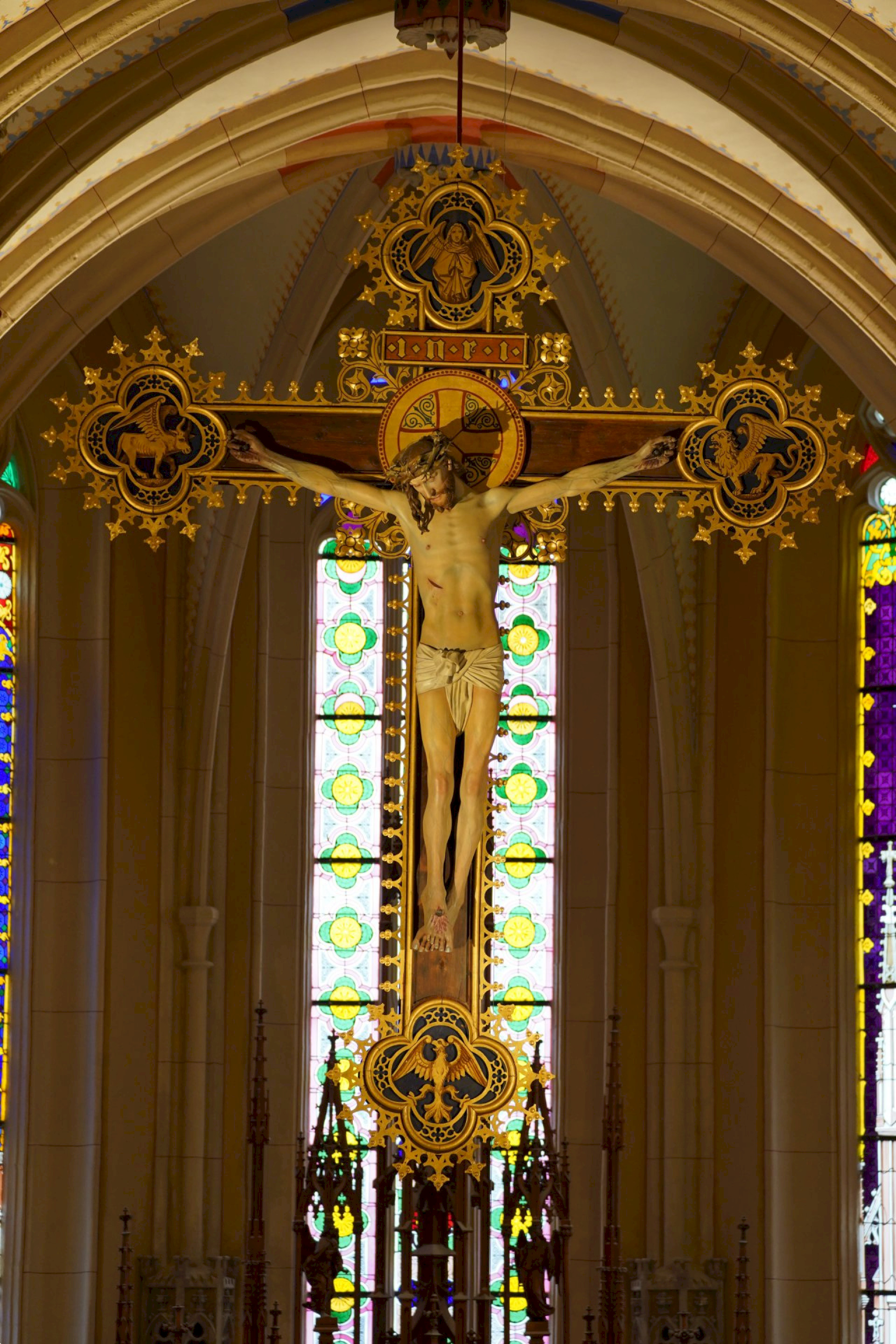 Die erste schriftliche Erwähnung stammt aus dem Jahre 1278, aberdie Kirche wurde im heutigen Ausmaßbis zum Jahre 1484 fertig gebaut.An der Weihe, so wird es vermutet,hat auch König Matthias teilgenommen. Es ist der langen Bauperiode zu verdanken, dass die Kirche sowohl die Stilmerkmale der Romanik, wie die wuchtige Steinmasse, als auch der Gotik, wie die hoch aufragenden Türme, gleichzeitig in sich trägt.Die Kirche zählt aufgrund ihrer Größe und Charakteristika zu den hervorragendsten Gebäuden der ungarischen gotischen Baukunst.