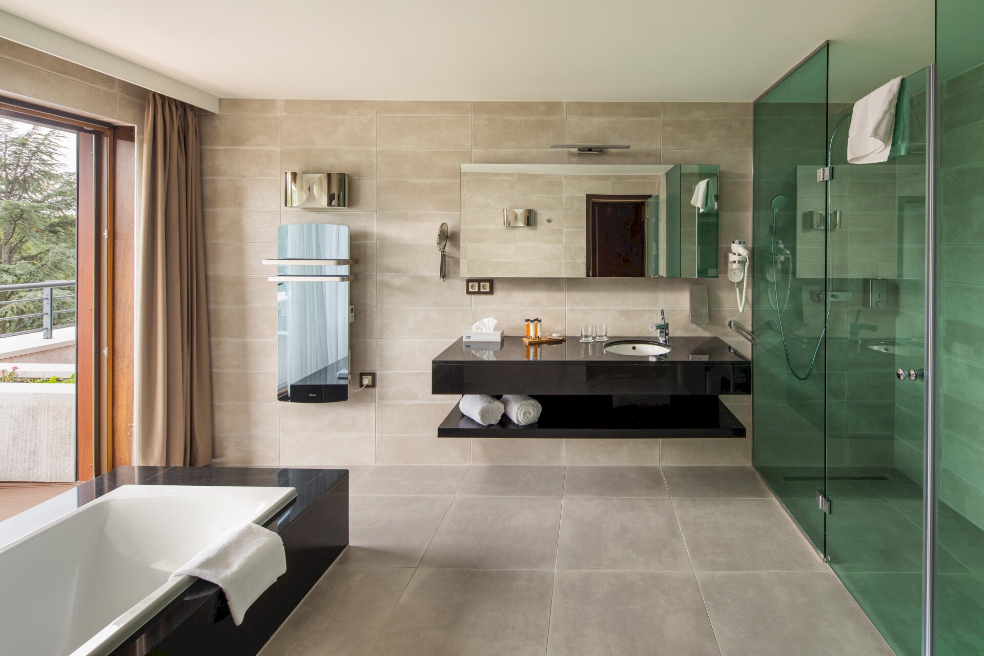 Das Hotel beherbergt die einzigartige Spa-Welt, die mit einer zweistöckigen Saunalandschaft, Schwimm-, Erlebnis- und Kinderbecken sowie speziellen Behandlungen exklusive Verwöhnung verspricht. Neben der Erfrischung runden Liegeflächen und Hängematten das Erlebnis ab und ebnen den Weg zur totalen Entspannung.