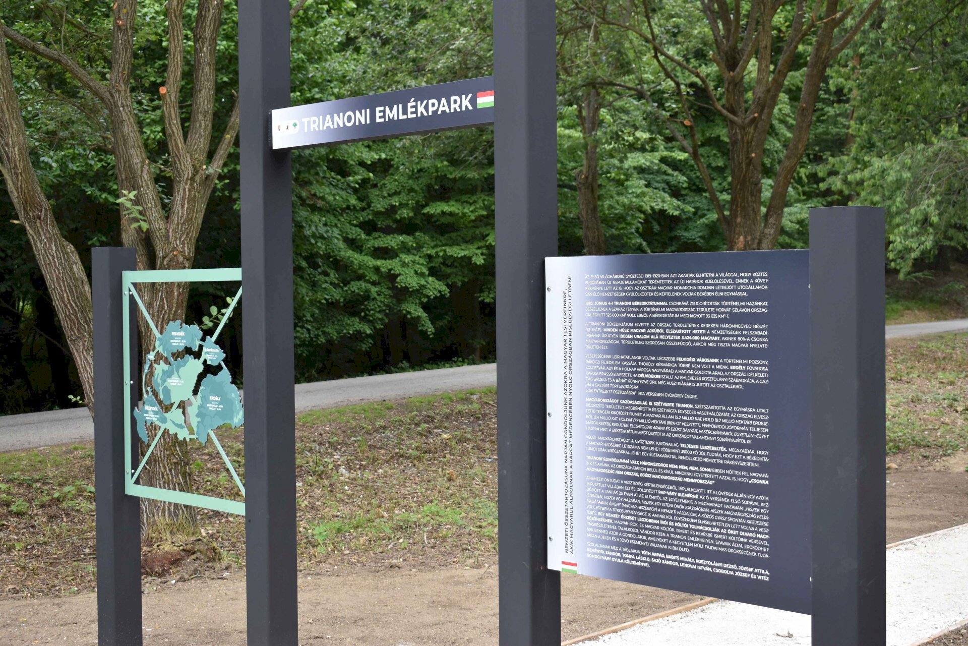 Im Soproner Parkwald wurde der Gedenkpark zum 100. Jubiläum der traurigen Ereignisse 1920 auf Initiative des Agrarministeriums angelegt. Auf der Fläche sieht man Großungarn aus Naturstein. Die roten Teile zeigen die abgetrennten Gebiete, der grüne Teil das heutige Gebiet Ungarns, und in der Mitte steht das Doppelkreuz auf einem dreier Grabhügel. Auf den ausgestellten Tafeln sind Informationen über das Friedensdiktat Trianon sowie Gedichte und Gedanken von Dichtern und Schriftstellern zu lesen.