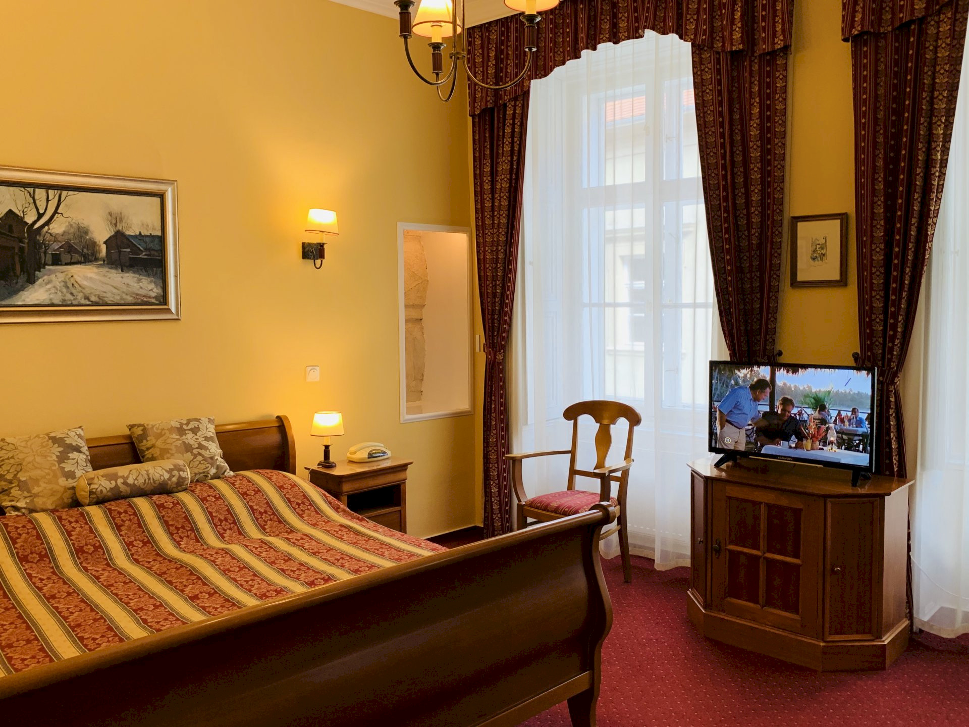 Seine Einrichtung und Atmosphäre spiegeln die Eleganz des vergangenen Jahrhunderts wider. Es hat einen einzigartigen hängenden Garten, in dem auch die rekonstruierten Ruinen der mittelalterlichen Burgmauern zu sehen sind.