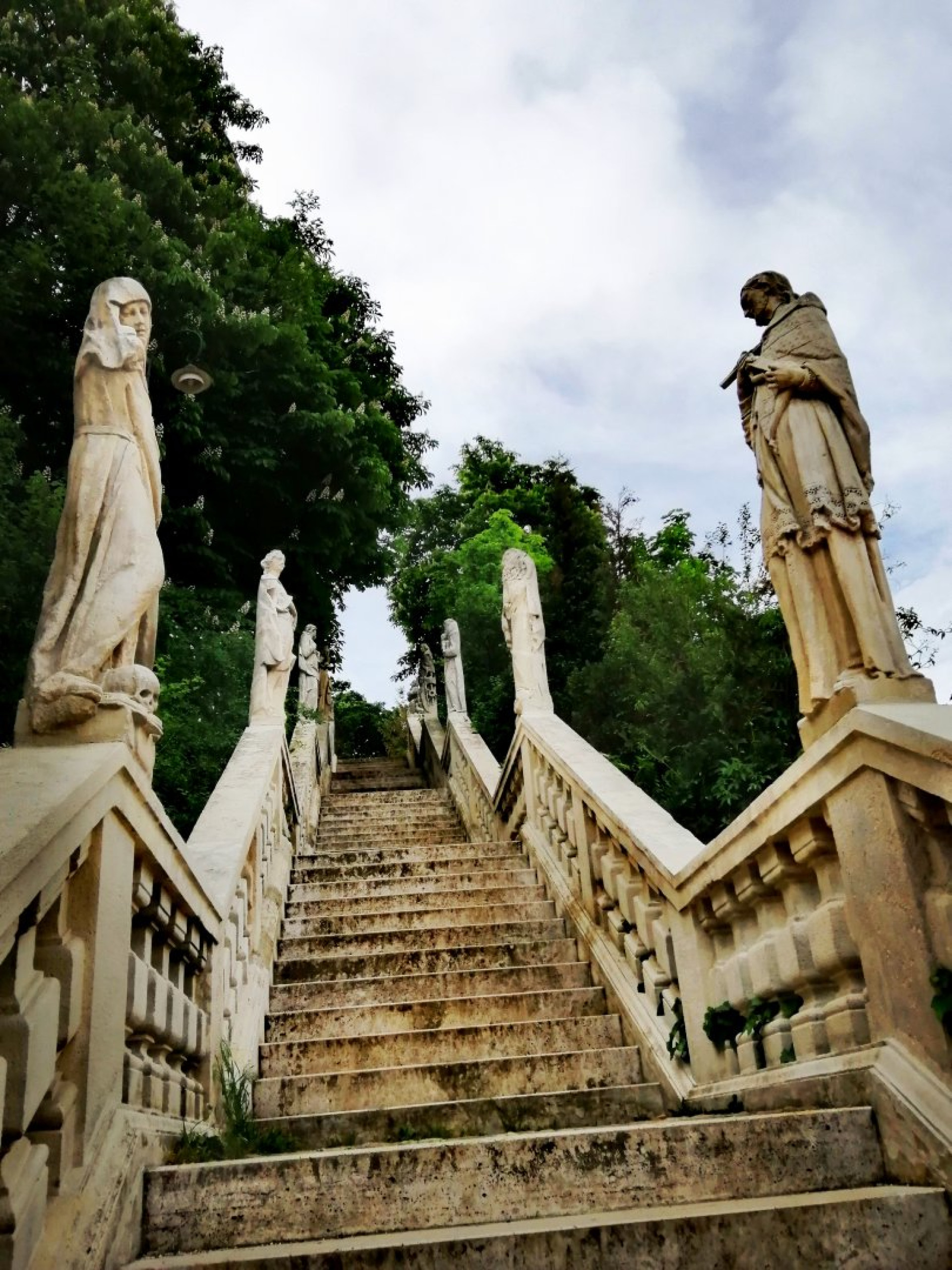 Ab 1968 begann der Wiederaufbau der zur Kirche führenden Treppe, wobei die im Laufe der Jahrhunderte verschwundenen Statuen aufgesucht wurden, die an ihren ursprünglichen Standort zurückgelangen konnten. Bis 2018 war der komplette Umbau abgeschlossen und die Treppe der Heiligen wartet wieder in ihrem alten Glanz auf die Besucher.