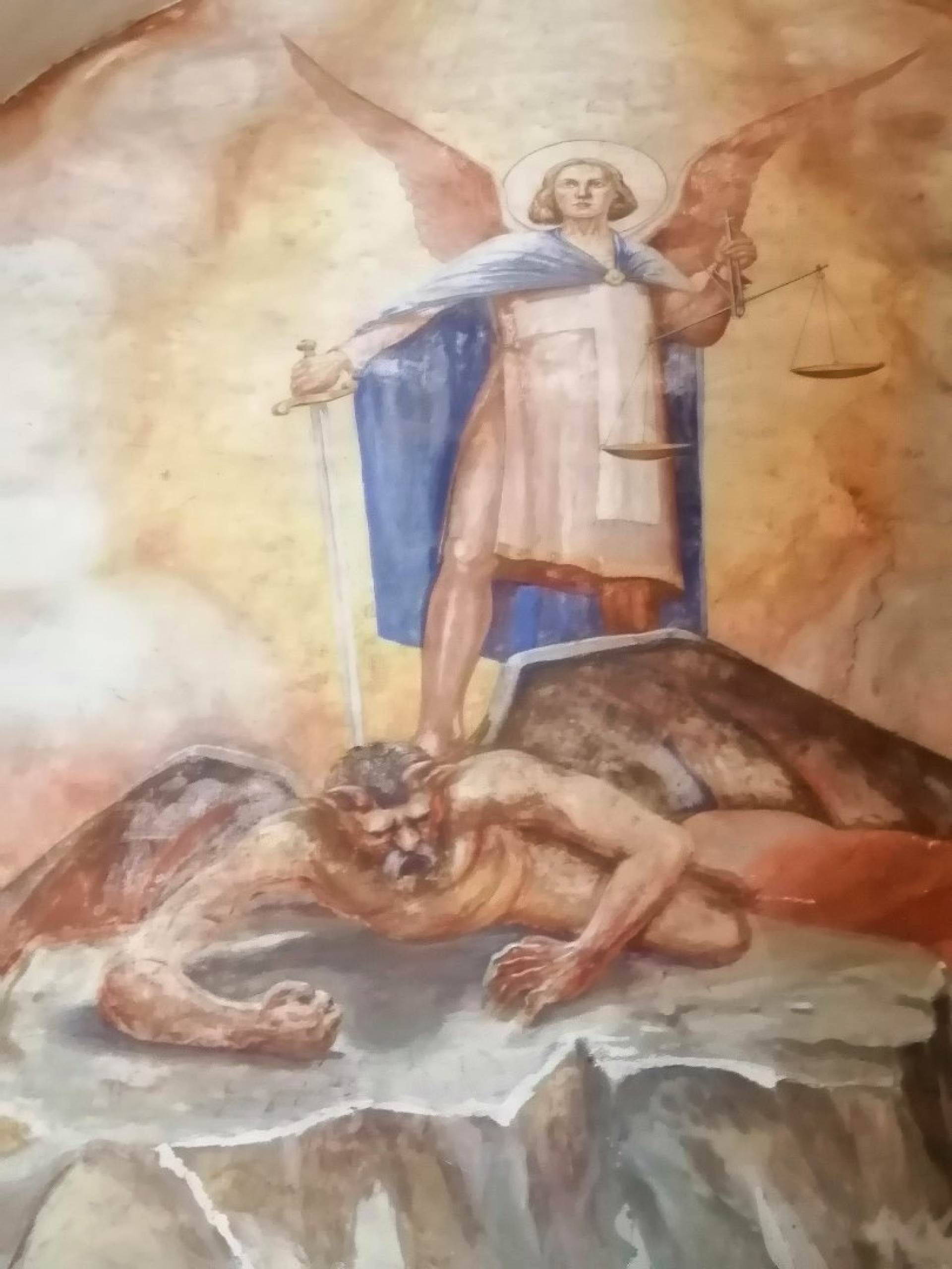 Der aus Eperjes stammende Maler, Zoltán Básti, stellte auf der rechten Seite der Orgelempore den Sieg des Erzengels St. Michael über den Teufel dar, und als Teufel malte Stalins Züge während der Zeit des Rákosi-Regimes.