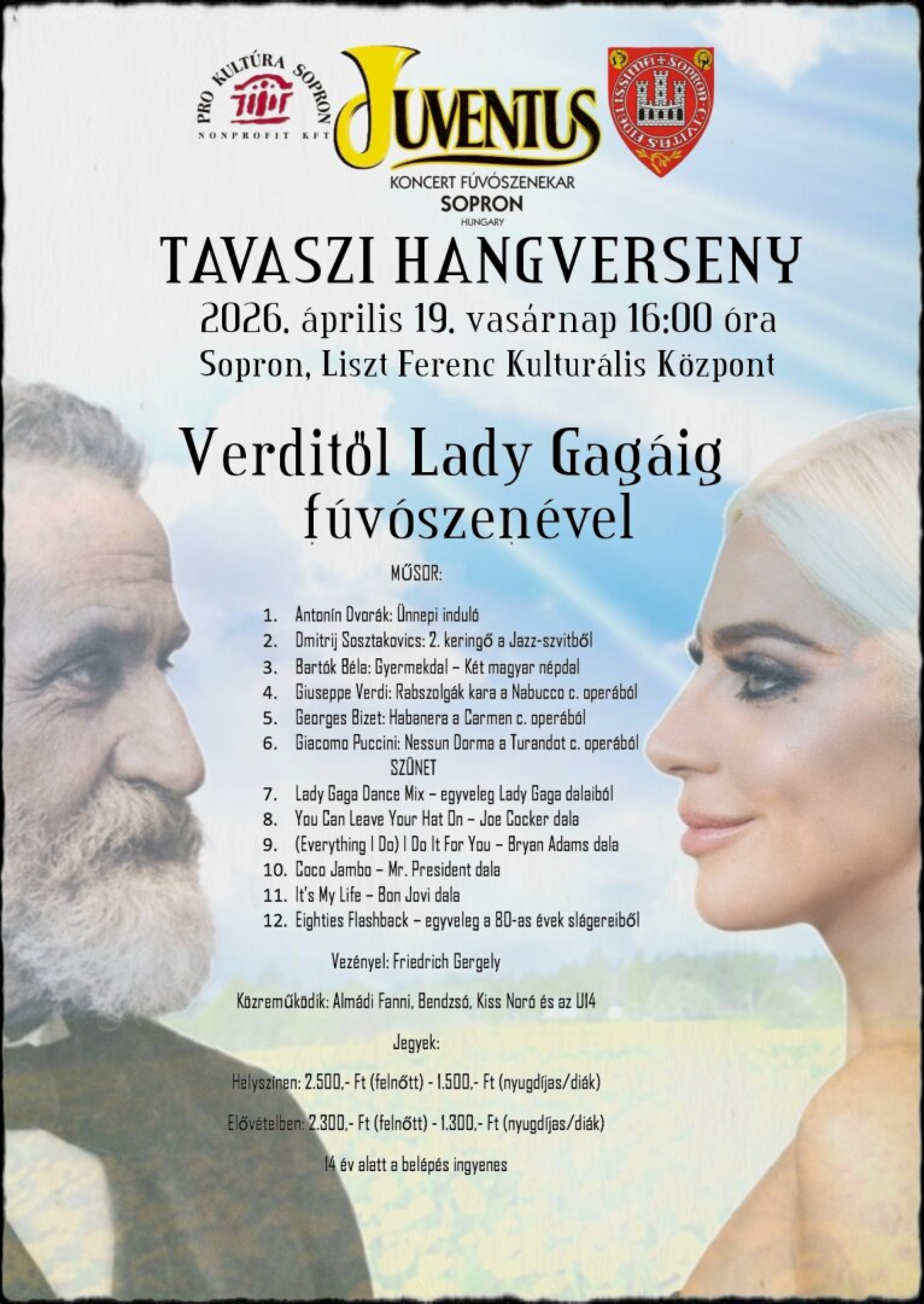 Das Juventus Orchestra Sopron gibt sein Frühlingskonzert am 19. April 2026 um 16:00 Uhr im Liszt Ferenc Kulturzentrum in Sopron.