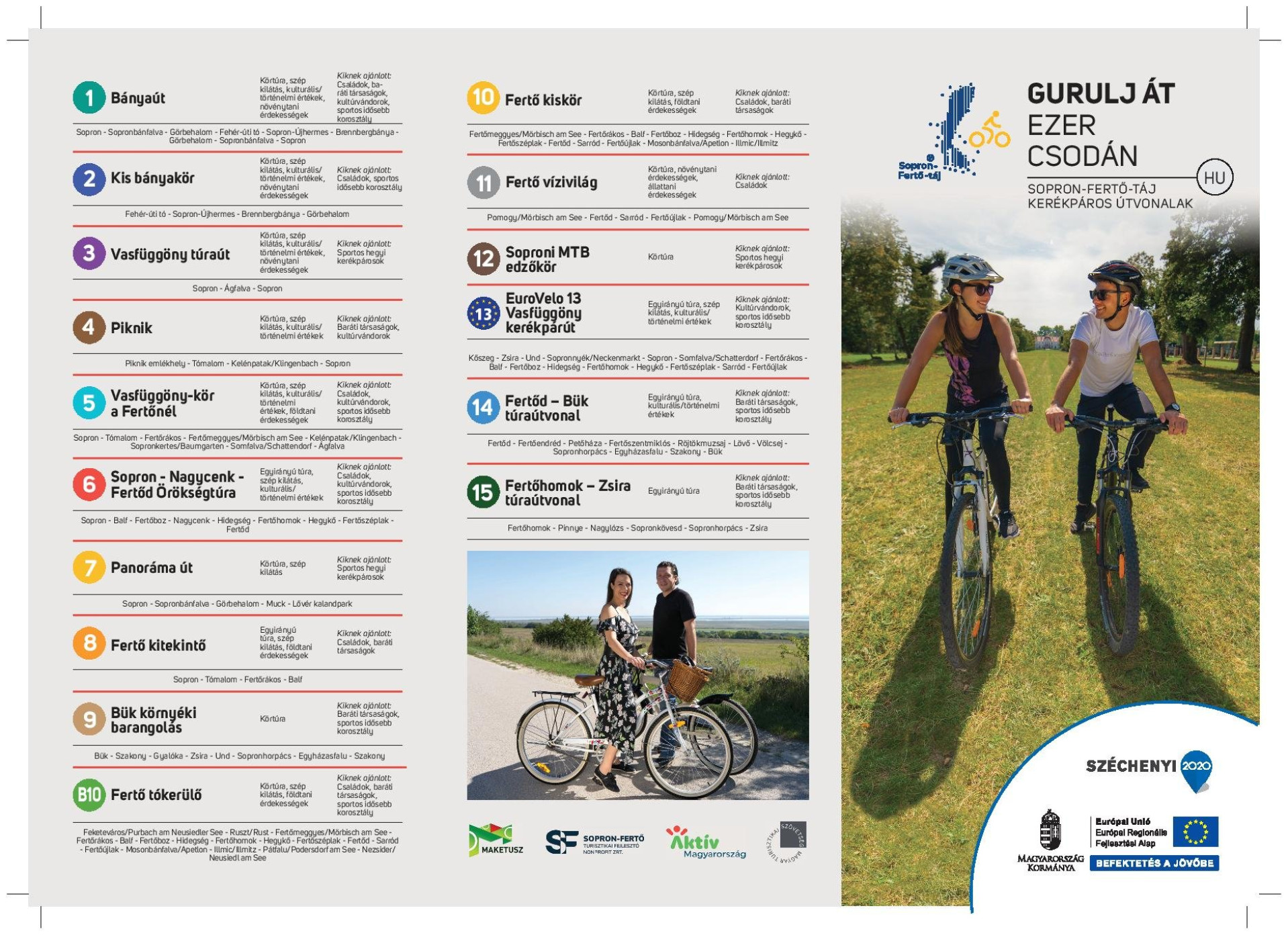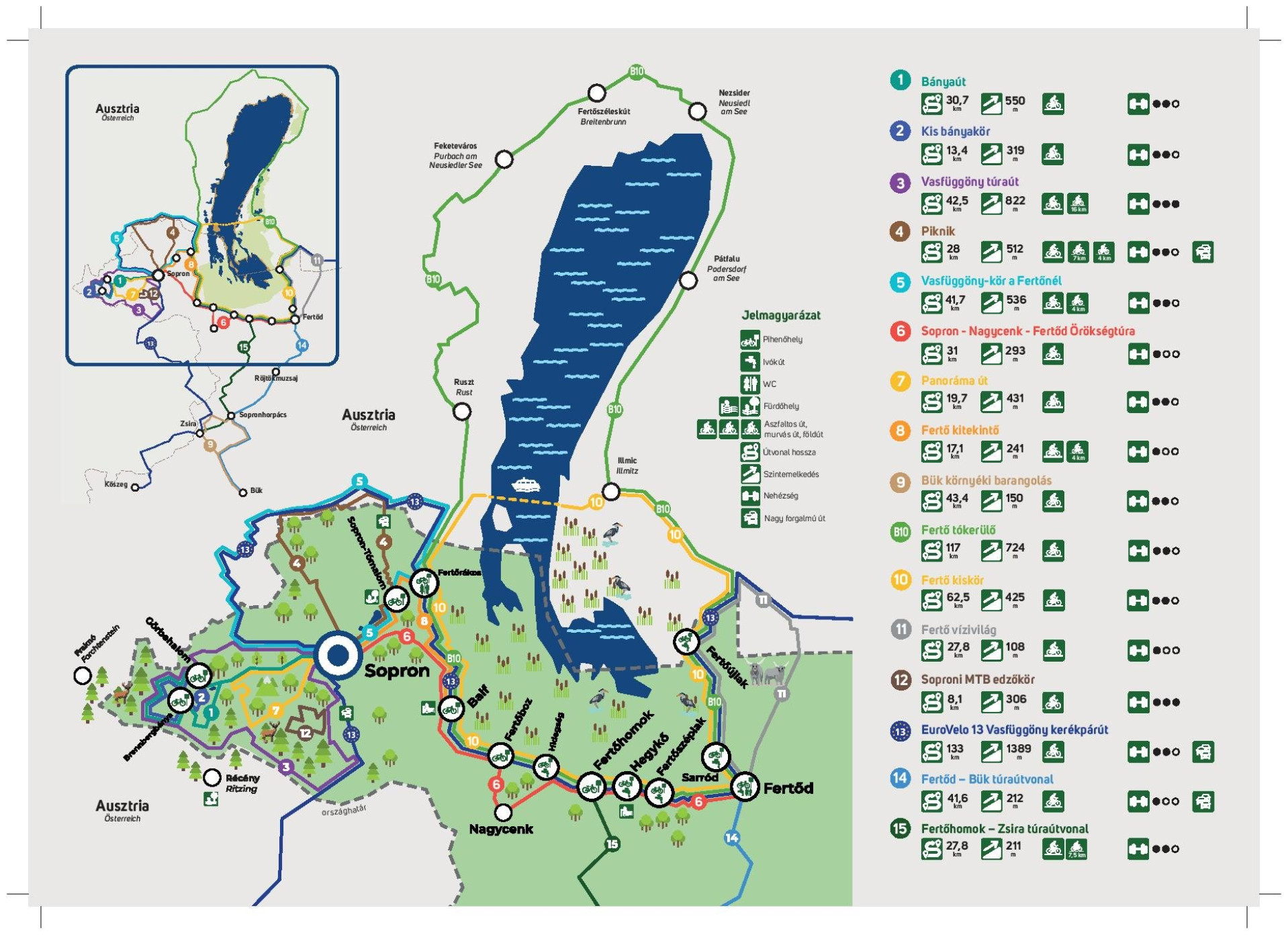 The most popular cycle track in the region is 121.5 km long, covering Lake Neusiedl, of which a 38 km section is in Hungary. The trail is appropriate for cycling all around the year. The path is well-established, and the trail is well marked. The trail mostly runs along a separate bike path, and partly on a lower-traffic bike lane. It is suitable for all types of bicycles.