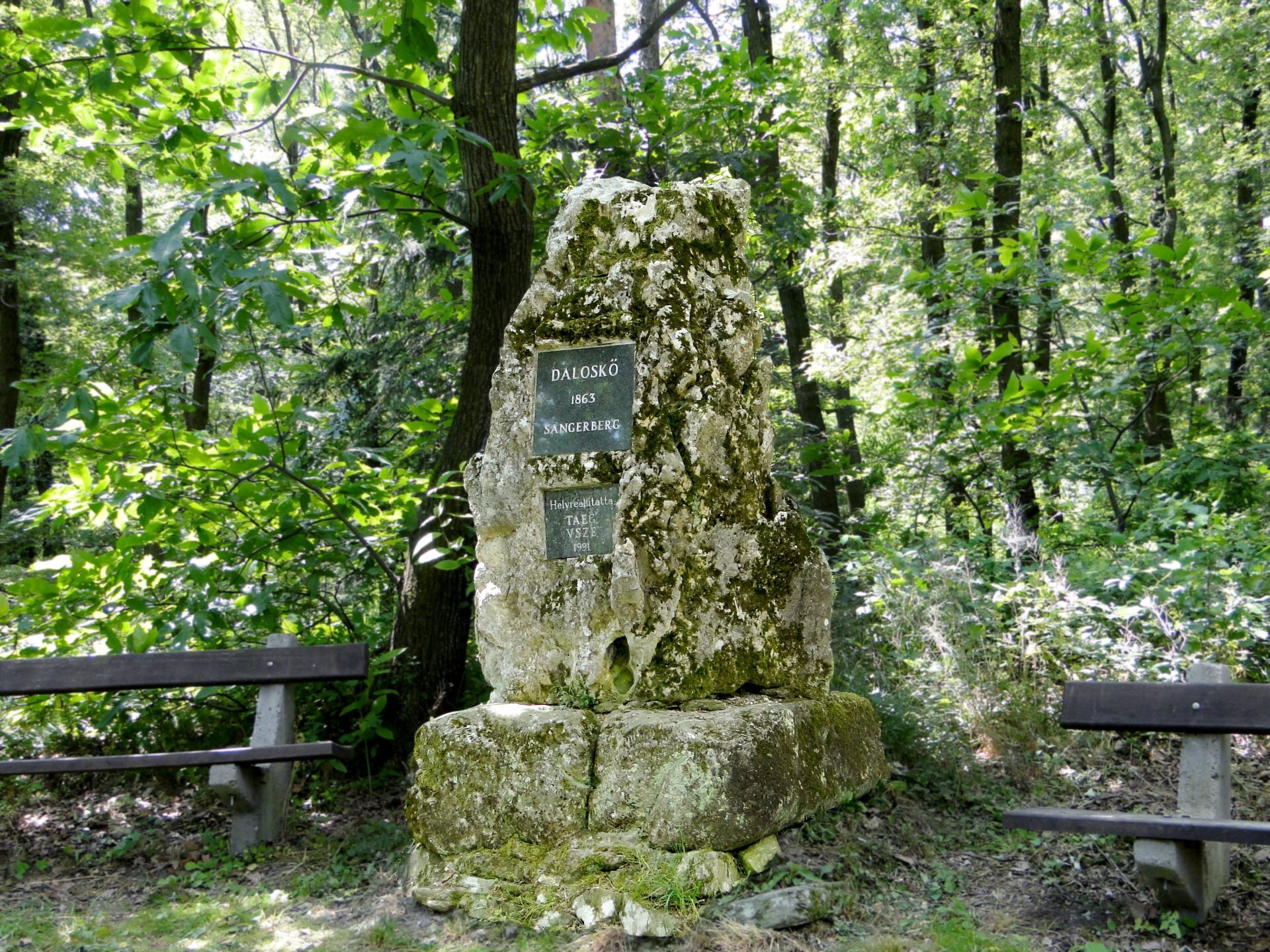 The Dalos Stone stands at the footpaths above the Dalos Mountain ski slope at the foot of the TV tower, which is reminiscent of the first Hungarian song contest held in 1863 with the participation of nearly 600 singers.