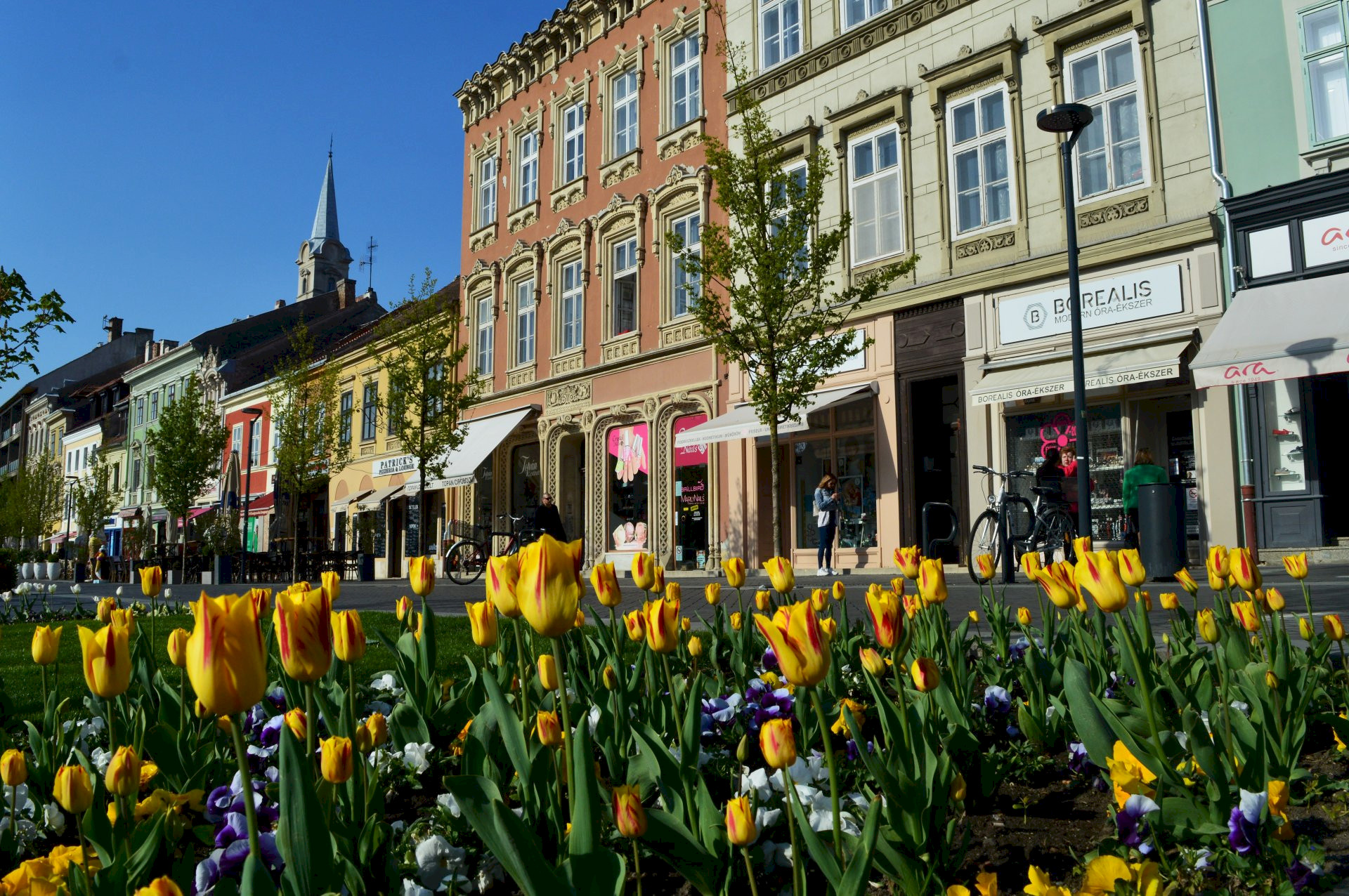 The castle wall is completely incorporated into the town, so we cannot enjoy the panorama from the wall because of the buildings that are in front of it. But walking on the Castle Wall Promenade formed in the former moat, we can travel back in time all the way to Roman times, just like on a historical educational trail. You can learn from the information boards that the trail of the town wall and the semi-circular bastion forts were left to us from Roman times. After the fall of the Roman Empire, the town was abandoned, but the ruins of the Roman town walls are still with us. They became the base of the castle rampart in the times of Árpád (the so-called “red rampart”), the 11th century. At the end of the 13th century and in the first half of the 14th century, the triple town wall, and the north gate tower as well as the lower, cylindrical part of today's Fire Tower were built. In the first half of the 17th century, several bastion forts were added to the medieval town wall, of which only the Great (St. George) bastion fort remained. After the Turkish threat was gone, the castle wall lost its military significance and the moat was filled up. On the land plots created on the former site of the moats, the rich ones built residential palaces, the less wealthy ones built narrow residential buildings, shaping the diverse inner row of houses in the Castle District. The buildings of the outer row of houses are older, many of them of medieval origin. Several of such buildings can be found in the section of the Castle District between Ikvahíd Street and Ógabona Square, in the so-called Little Castle District. The most characteristic of them is the Rejpál House and the neighbouring Festőköz (Painters' Passage), through which the blue-dye painters carried their canvases to the attic of the nearby painting house. Not far from the charming medieval passage you can see the façade of the Lion's Pharmacy ornamented with Zsolnay majolica. The pharmacy has been operating here for almost 300 years, but its legal predecessor, the Golden Eagle Pharmacy, was operating in the adjacent building since 1623. In the section from Ikvahíd Street to Széchenyi Square, inns used to line up to host many famous people. Just a few names without claiming completeness: Miklós Zrínyi, poet and warlord, Joseph Haydn, Ferenc Liszt, Johann Strauss Jr., Joseph II as heir to the throne ("King with a Hat") and Ferenc Joseph as King of Hungary. On the north-western edge of the former castle wall you will find the medieval Ógabona Square, and in the south-western and southern parts, after filling up the lakes that used to supply the moat with water, today's Petőfi Square and Széchenyi Square were built. It is worth taking a walk around the former town wall, where visitors can have countless experiences. Visit and enjoy the Castle Wall Promenade with its Mediterranean feel, the shops and cafés lined up in the ancient houses of the Castle District, the music fountain of Petőfi Square with the Petőfi Theatre, and the benches of Széchenyi Square from where you can see the statue of the eponymous István Széchenyi and the only two-towered church in the town, the Dominican Church.