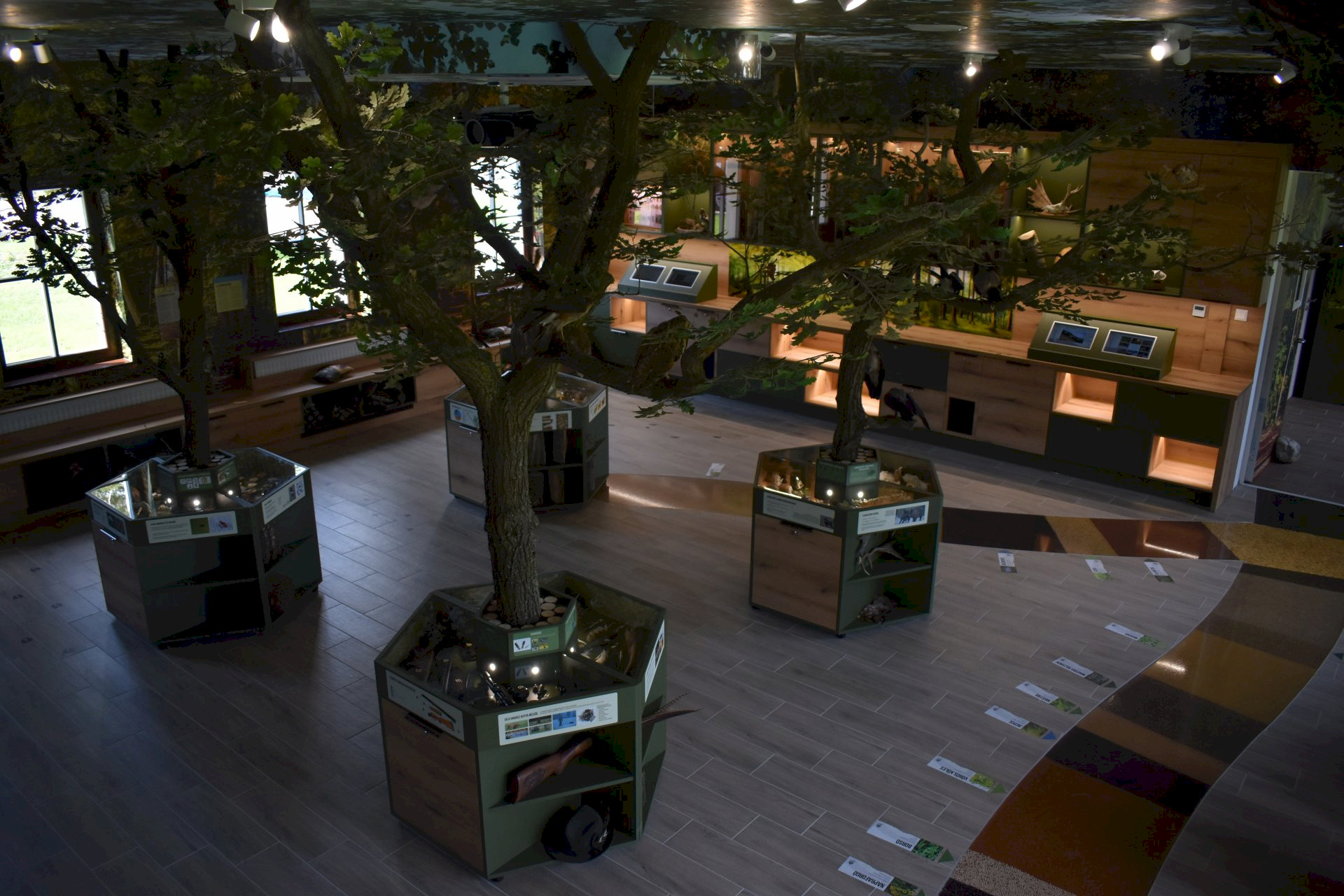 The rooms of the main building are equipped with interactive tools that, together with an exhibition illustrating the forest community in detail, offer visitors an unforgettable experience. One of the huge freshwater aquariums is also clearly visible from the buffet.