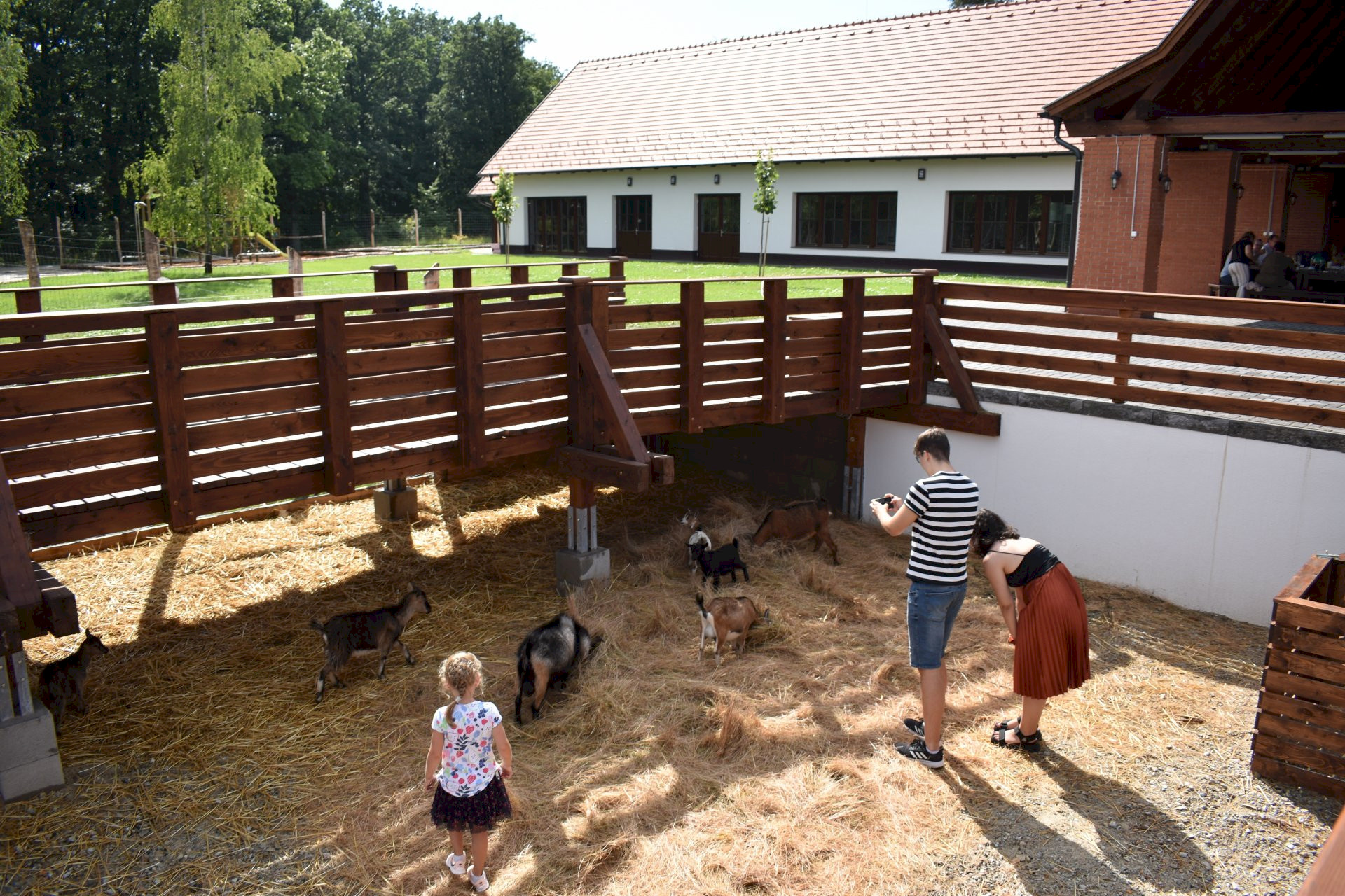 The covered terrace of the buffet is connected to the game park by a wooden bridge promenade, from which you can easily get to know the animals of the game park, such as fallow deer, red deer, mouflon, wild boar and many small game species.