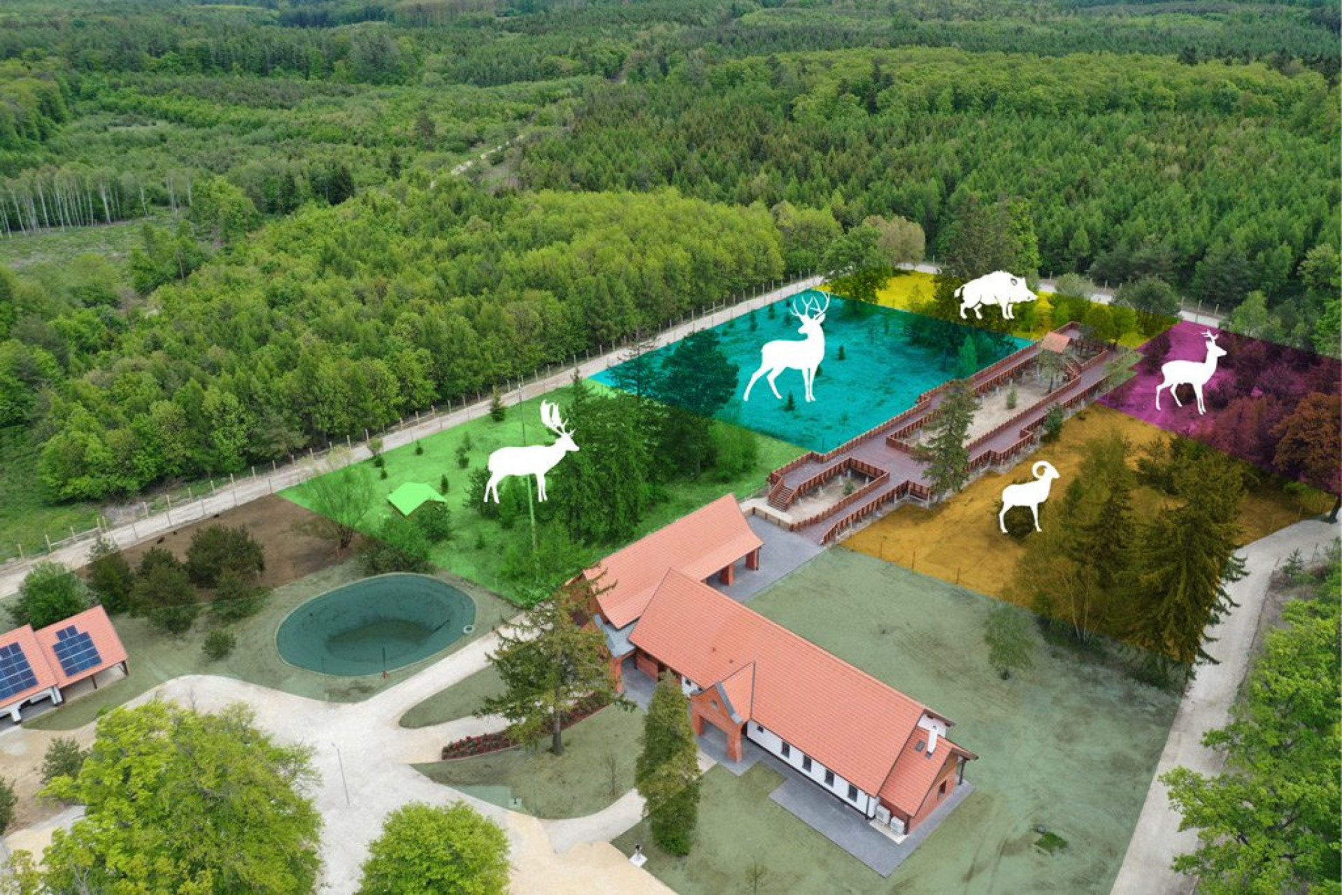 The showroom, which condenses an unmistakable forest experience, and the game park, which presents the domestic wild species of hidden life, also serve the realization of educational goals in the nearly two-hectare area.