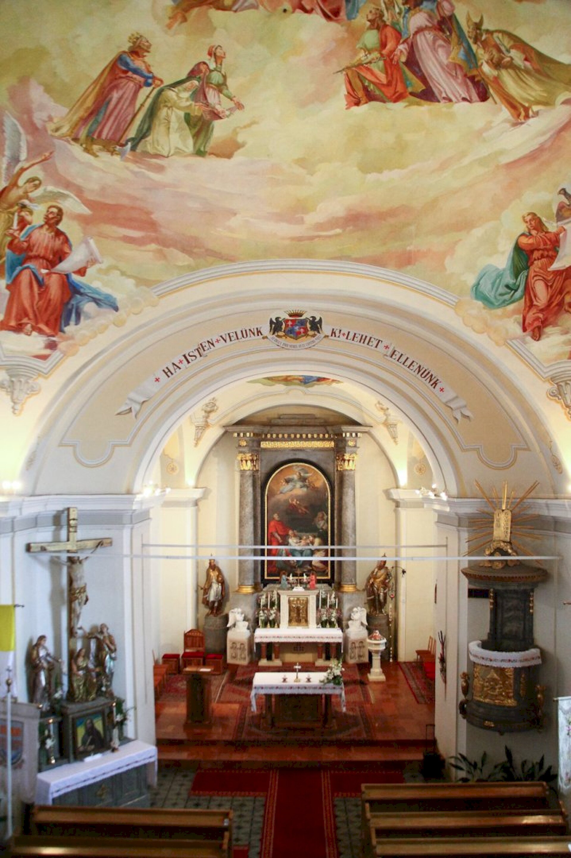 Located in the centre of the village, the church was built in 1806 by Count Széchényi Ferenc. The main altar construction lined with Corinthian columns dates from the 1810s and is of Neo-Romanesque style. Next to it on both sides you can see the baroque statues of King St. Ladislaus and St. Stephen.