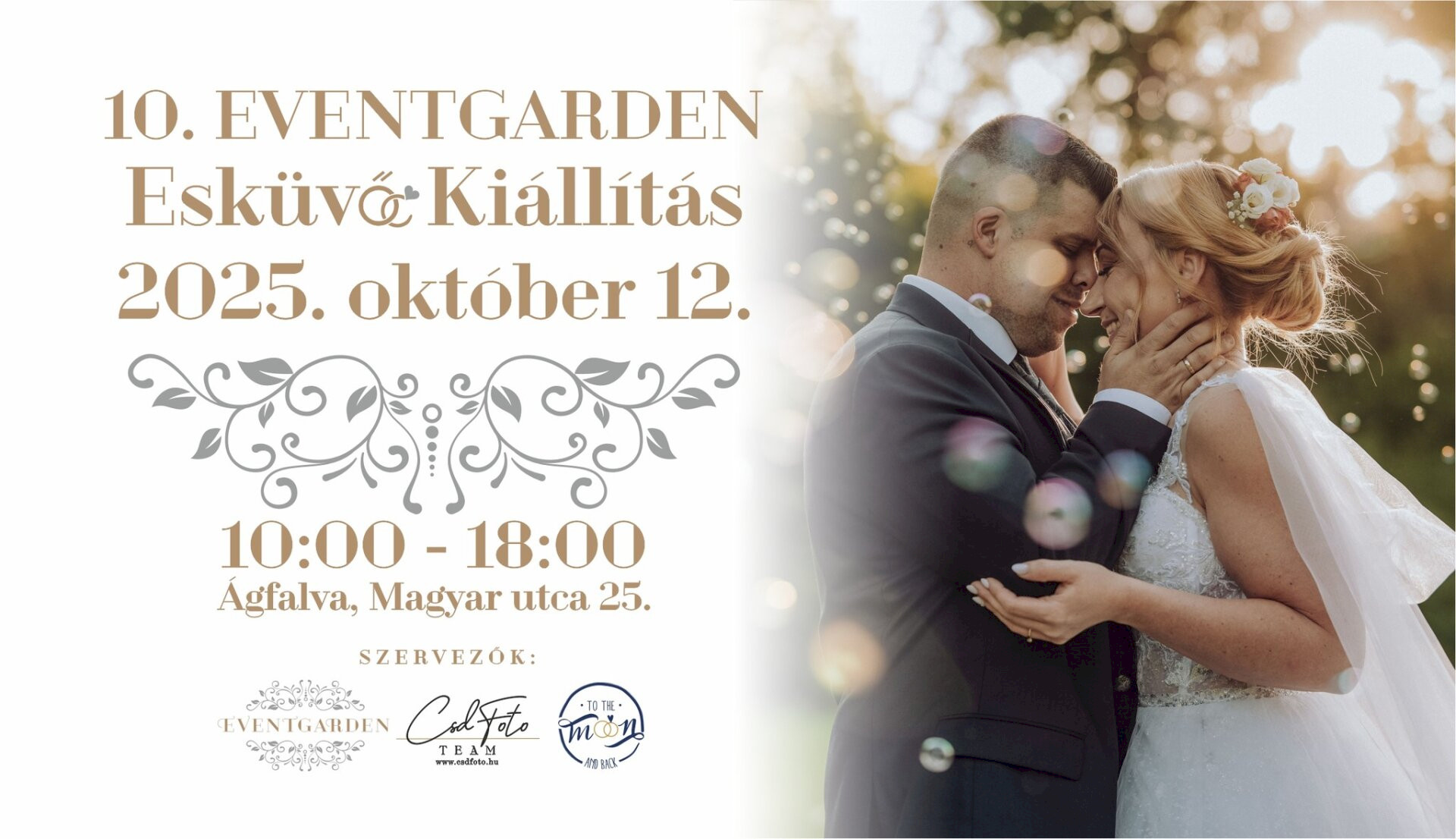 Képzeljétek el, 2025. október 12-én esküvő kiállítás lesz az Event Gardenben! Idén a 10. Ismét rengeteg kiállító várja majd a jegyeseket.