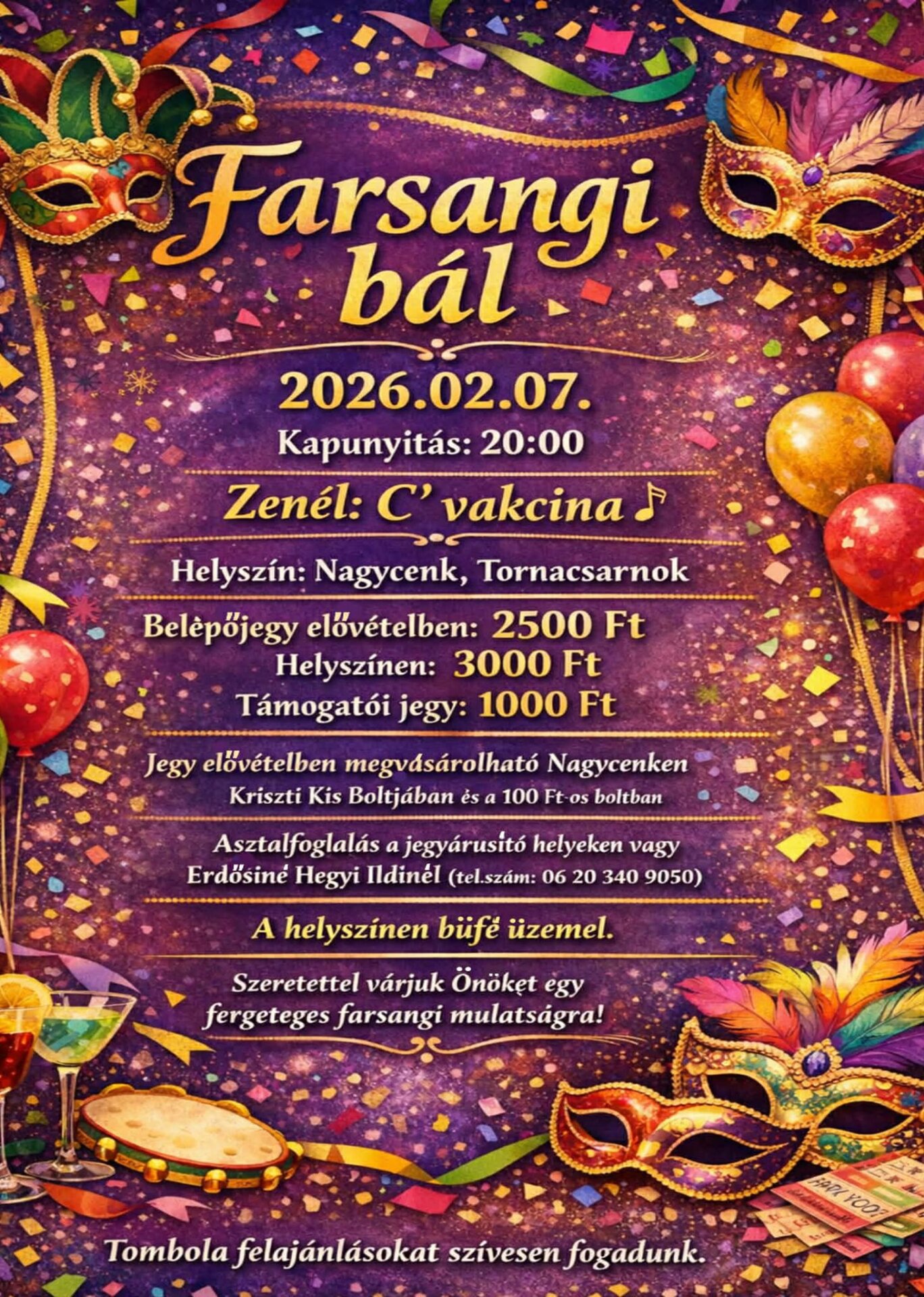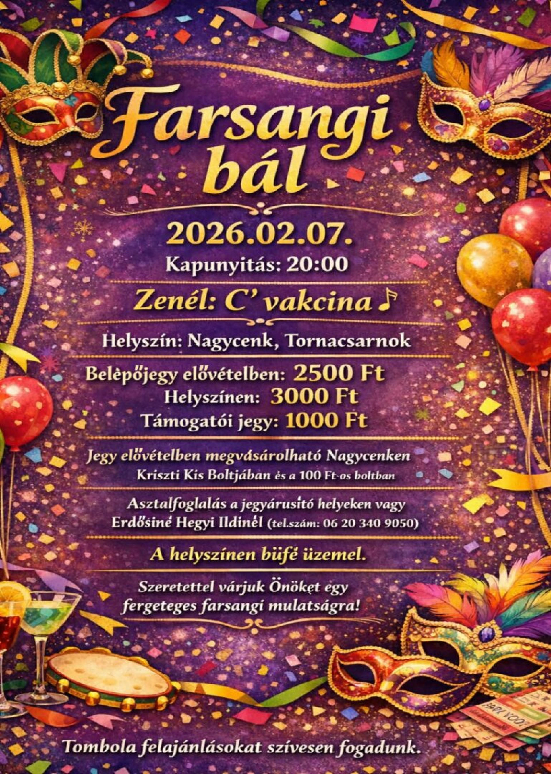 Szeretettel várunk mindenkit Nagycenken a Tornacsarnokban 2026. február 7-én!