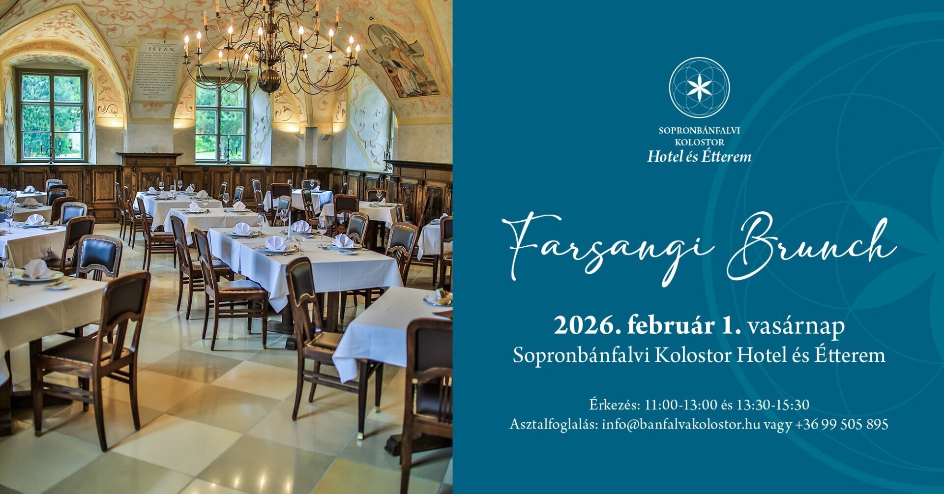 Ünnepelje a farsangi szezont egy különleges gasztronómiai utazással az ország egyik legkülönlegesebb helyszínén! A Sopronbánfalvi Kolostor Hotel és Étterem falai között a történelmi miliő és a modern konyha találkozik, hogy egy felejthetetlen vasárnapi délelőttöt varázsoljunk Önnek és családjának.