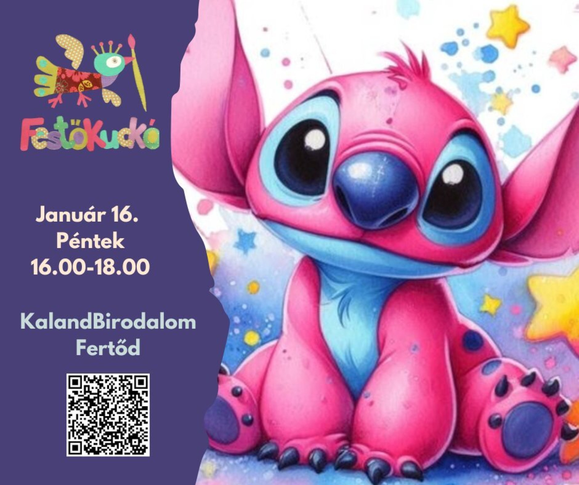 Ecsetet ragadunk, színekkel varázsolunk és életre keltjük Angel mosolygós világát. Egy vidám, kreatív festőfoglalkozás kis meseimádóknak.