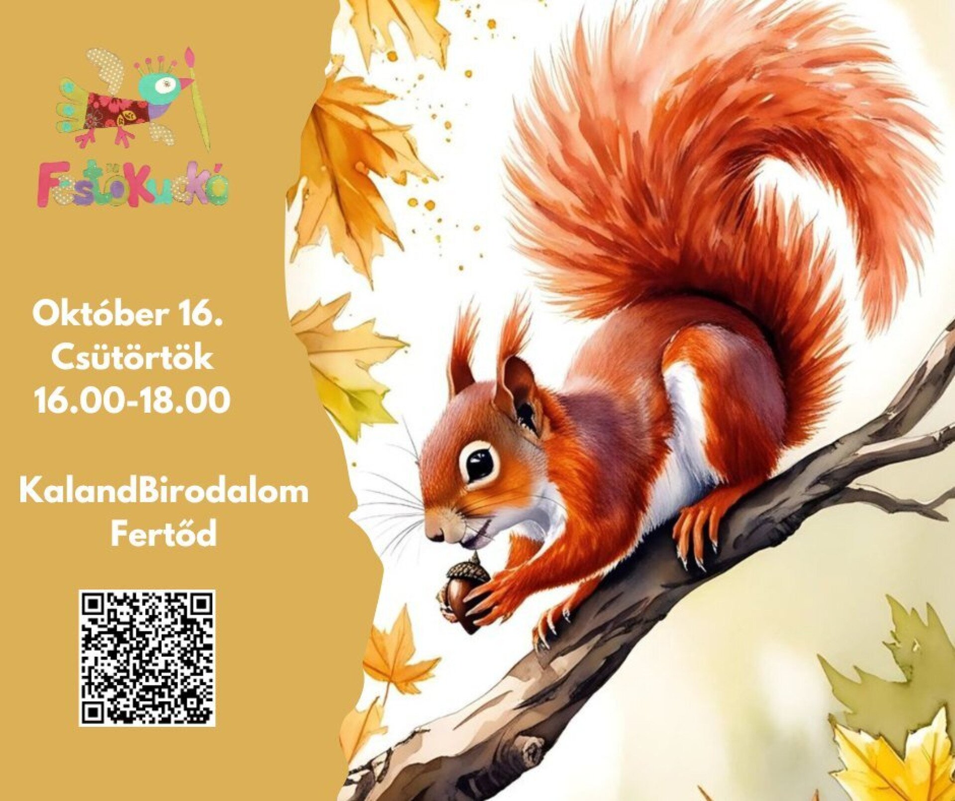 Ezúttal egy kedves mókust festünk, aki az őszi erdő kincsei között készül a télre.