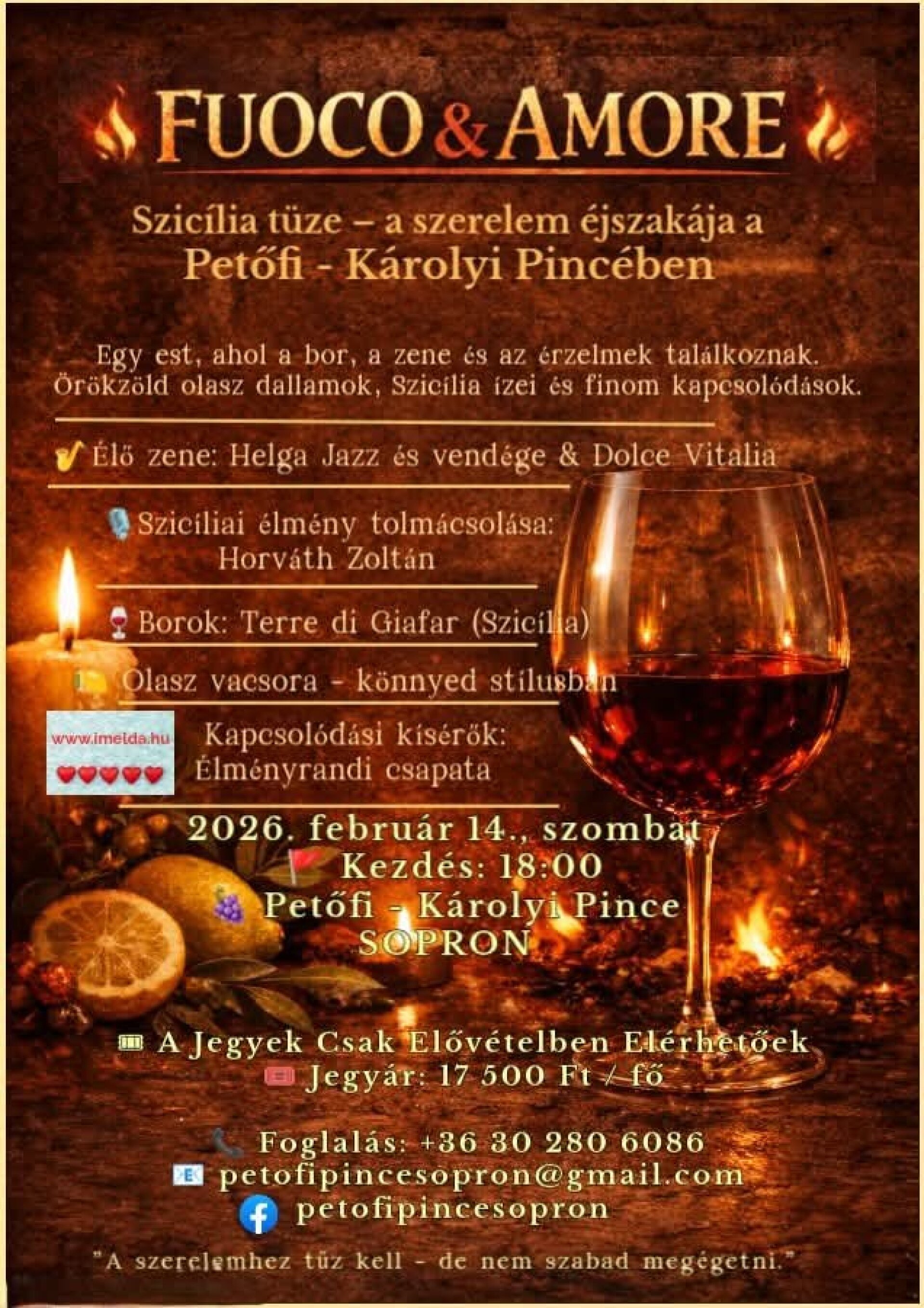 Fuoco & Amore - Szicília tüze – a szerelem éjszakája a Petőfi–Károlyi Pincében