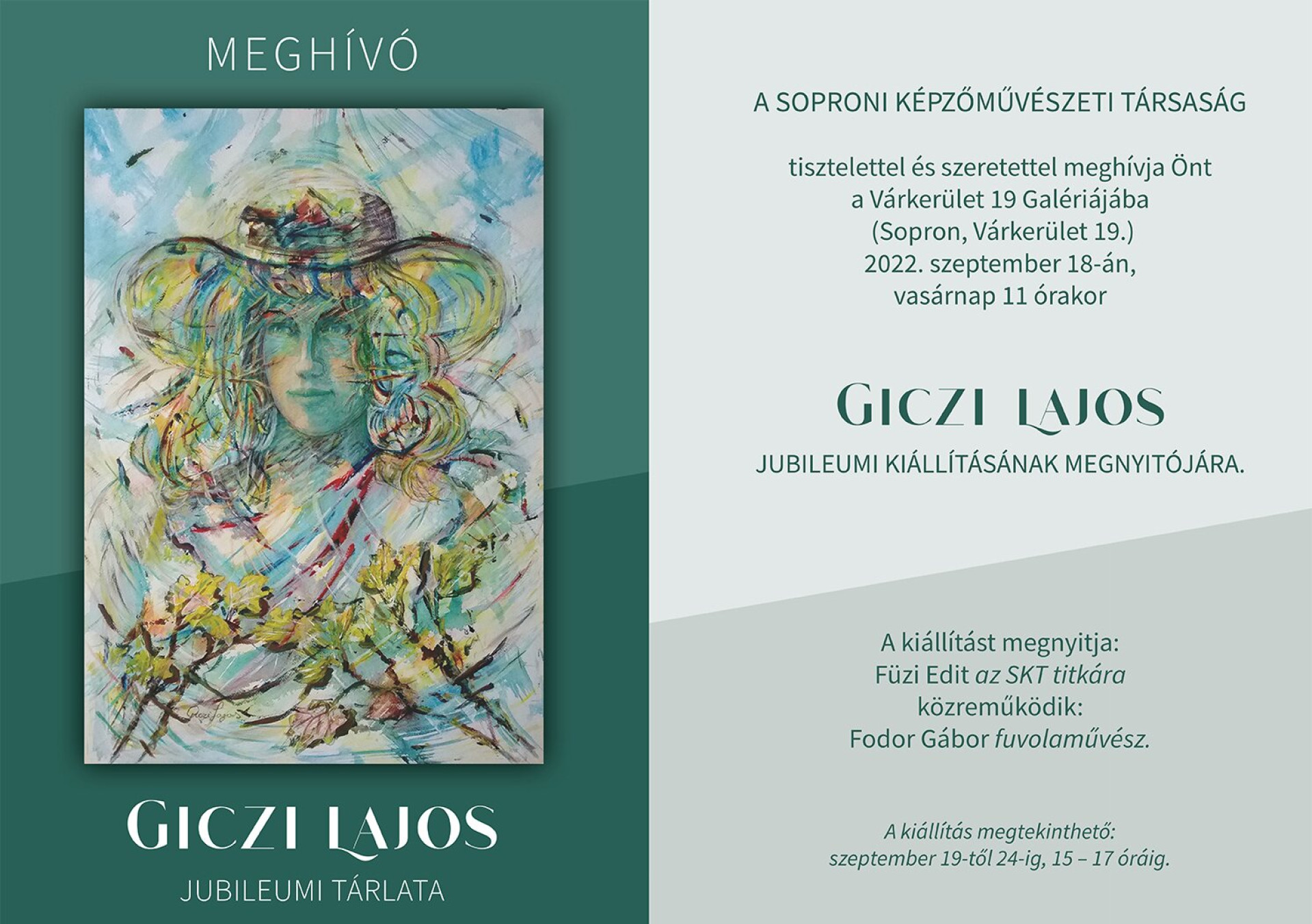 A kiállítás 2022. szeptember 19-24. között 15-17 óra között tekinthető meg.