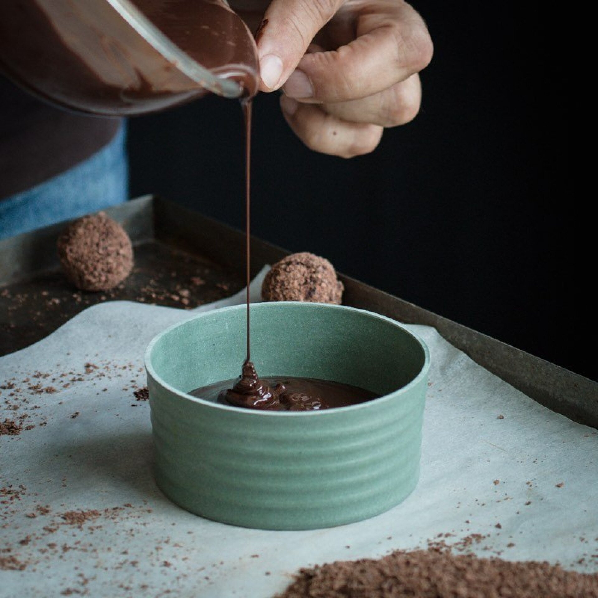 Egy csokoládé-kóstoló, miközben a hatalmas látványkonyha nagy üvegablakán át bekukucskálhatunk a sütemények, csokoládék készítésébe is.