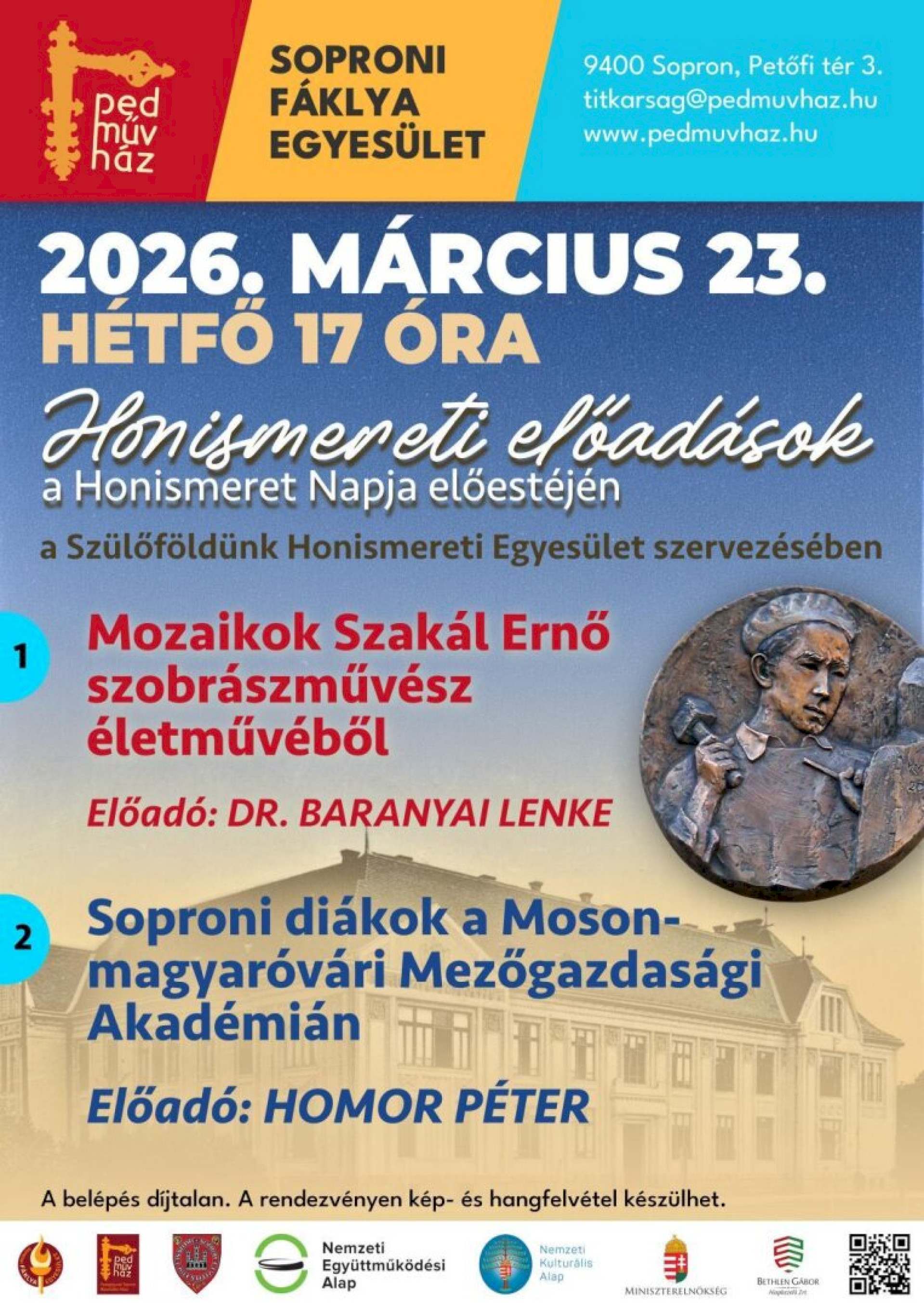 Helyszín: Pedagógusok Soproni Művelődési Háza, Sopron Petőfi tér 3.