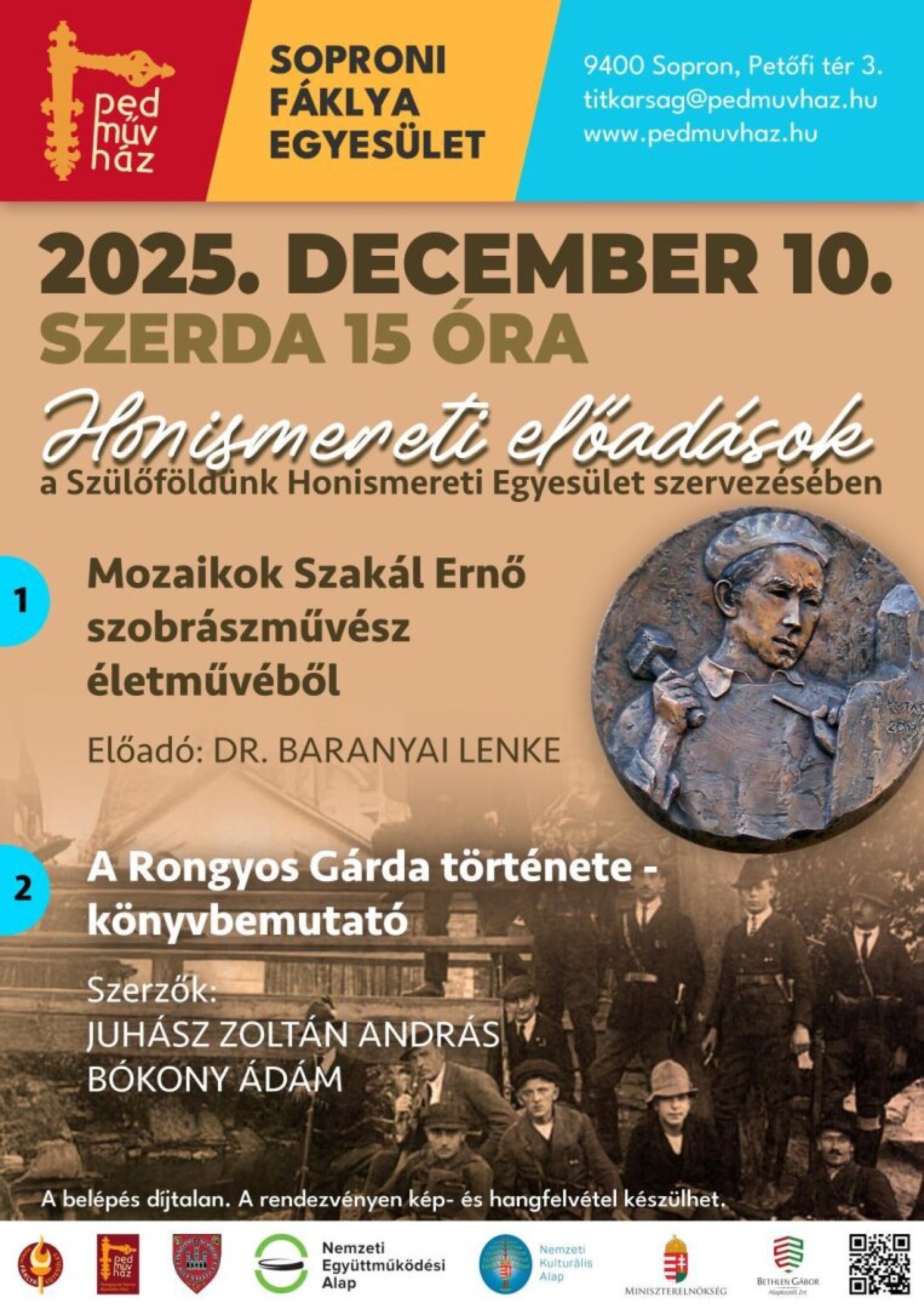 Mozaikok Szakál Ernő szobrászművész életművéből. Előadó: Dr. BARANYAI LENKEA Rongyos Gárda története - könyvbemutató. Szerzők: JUHÁSZ ZOLTÁN ANDRÁS és BÓKONY ÁDÁM