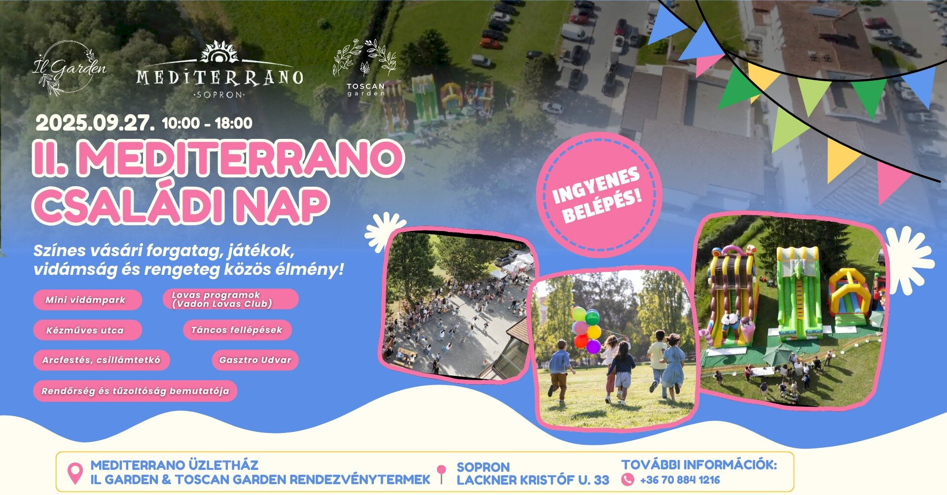 Helyszín: Mediterrano – alsó parkoló, Il Garden & Toscan Garden Rendezvénytermek (Sopron, Lackner Kristóf u. 33.)