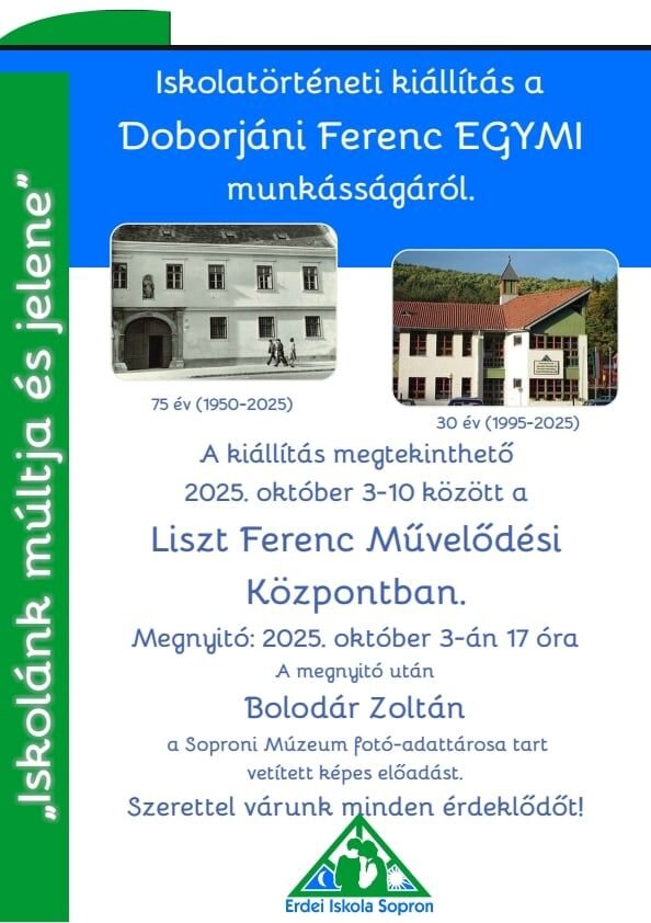 Iskolatörténeti kiállítás a Doborjáni Ferenc EGYMI munkásságáról.