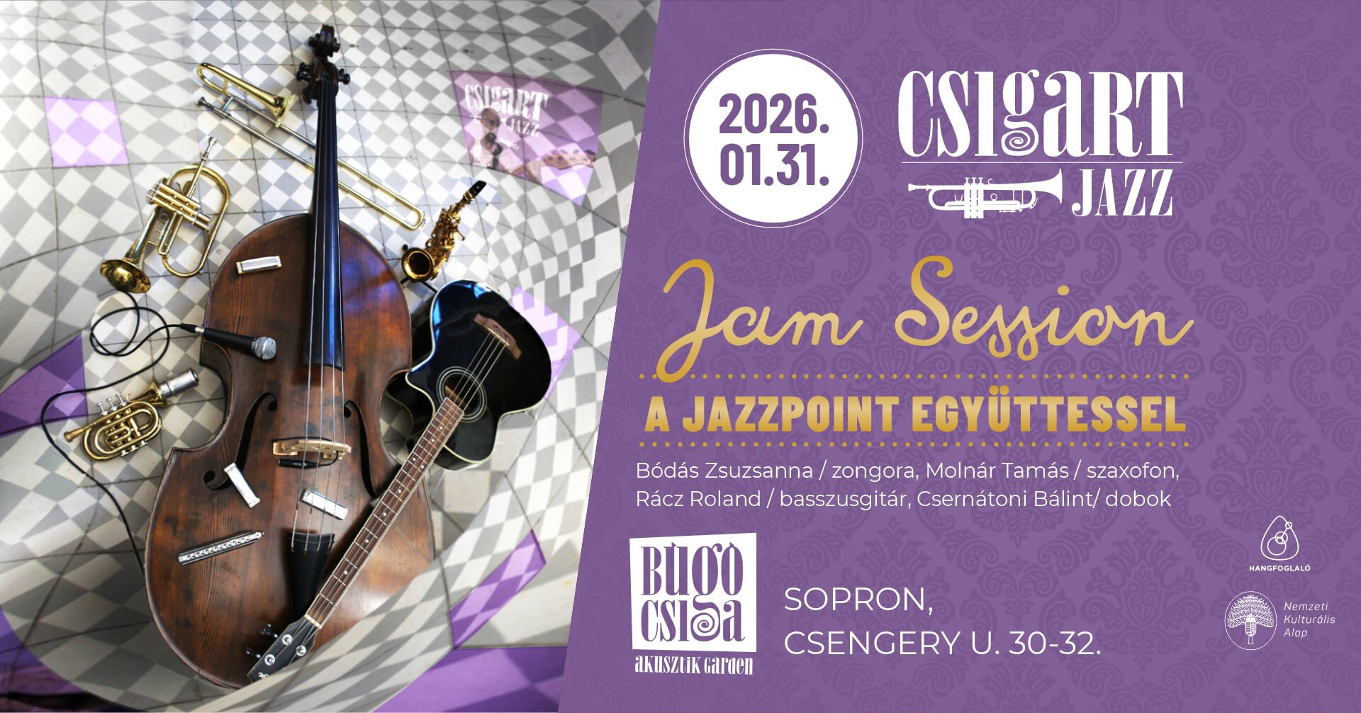 2026-ban is folytatódik a CsigArt-Jazz és Jam Session programsorozat: január 31-én ismét szeretettel várunk minden jazzkedvelőt és muzsikálni vágyót a Búgócsigában, ahol az estét ez alkalommal is a soproni Jazzpoint nyitja meg soul, fúziós és latin jazz remekművekkel!
