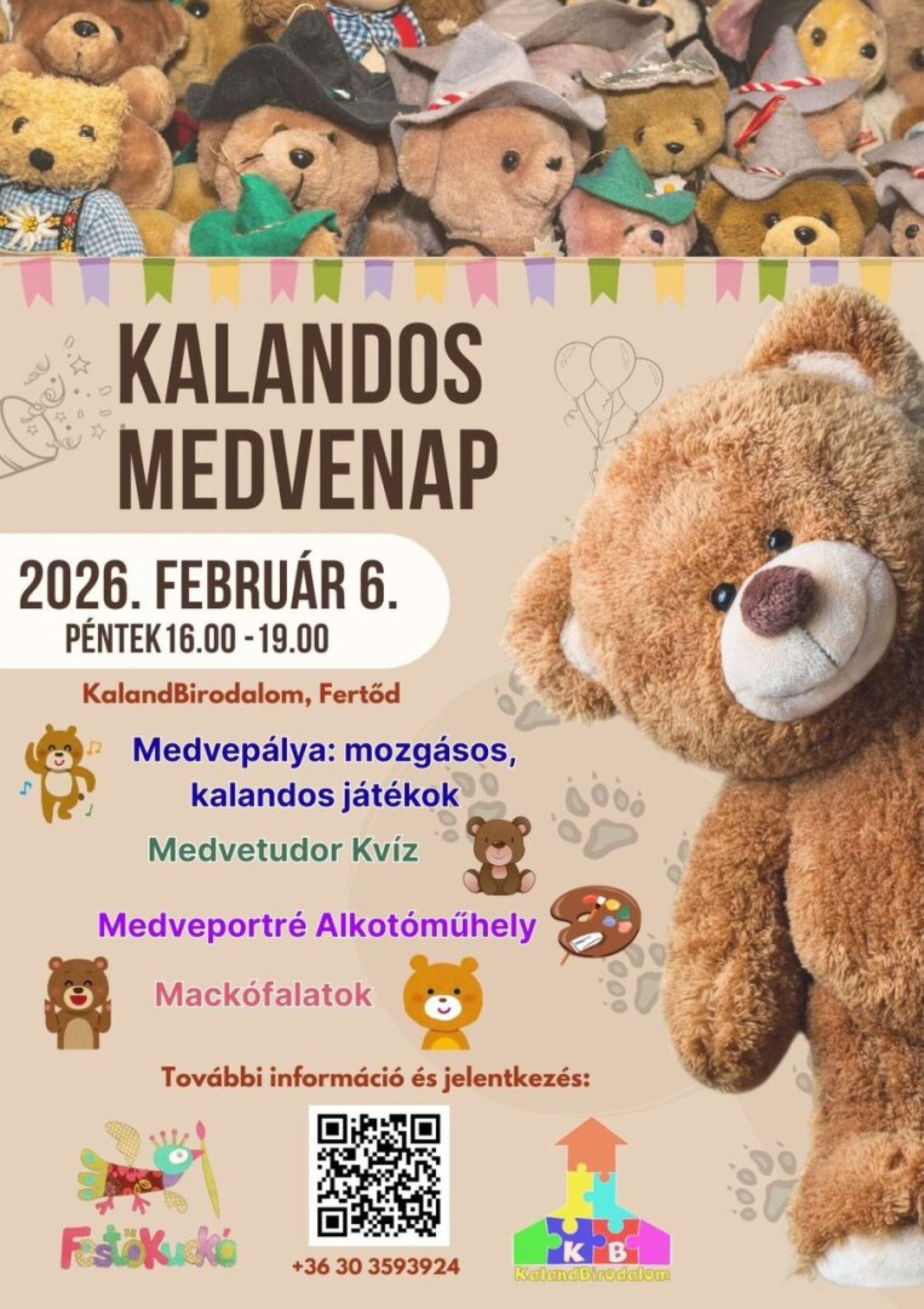 Előzetes bejelentkezést kérünk elsősorban itt https://url-shortener.me/7L81 vagy a következő telefonszámokon: 20/773 3990 (KalandBirodalom) 30/359-3924 (Tirászi Ágnes)