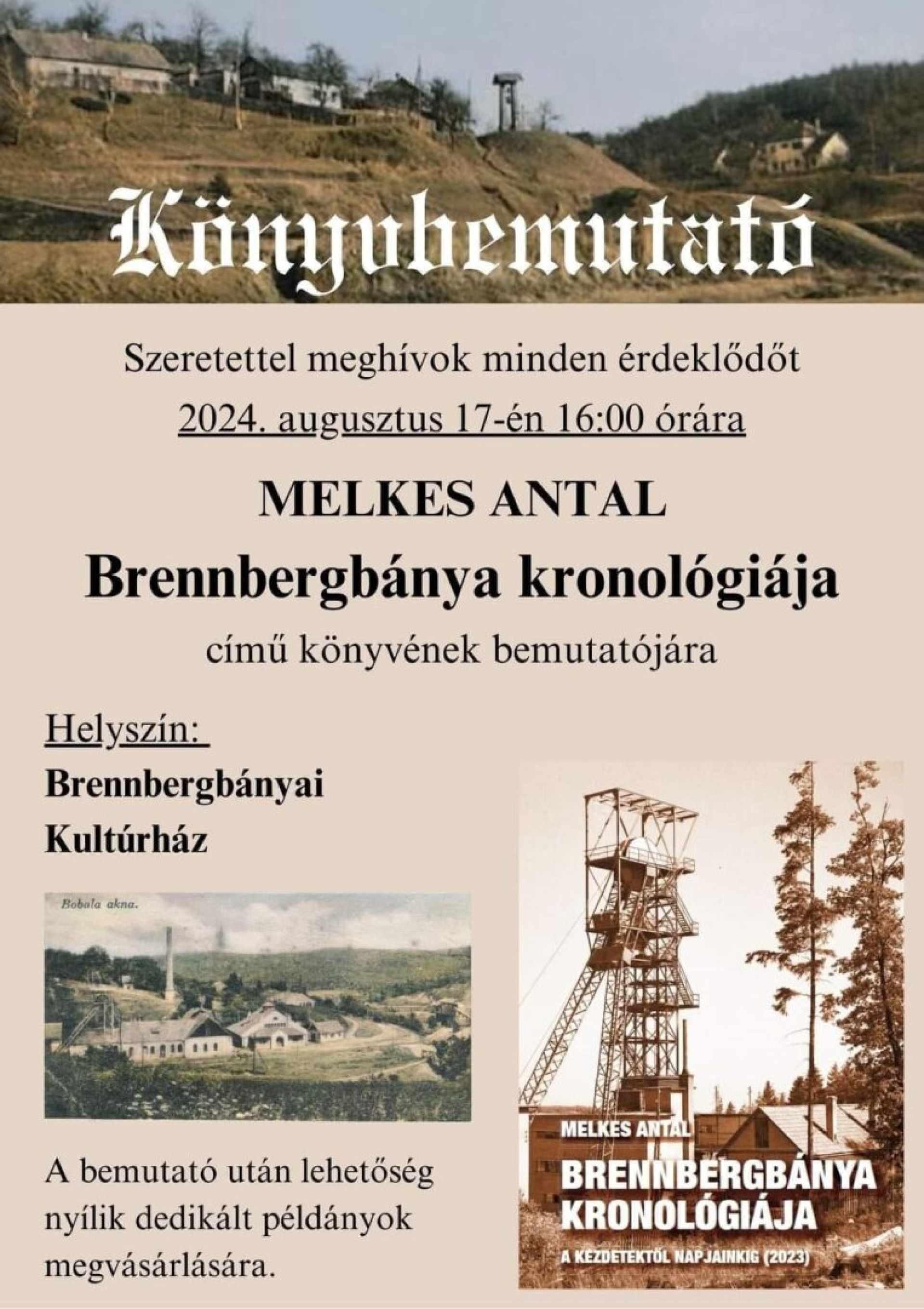 Szeretettel meghívunk minden érdeklődőt 2024. augusztus 17-én 16:00-kor a Brennbergbányai Kultúrházba.