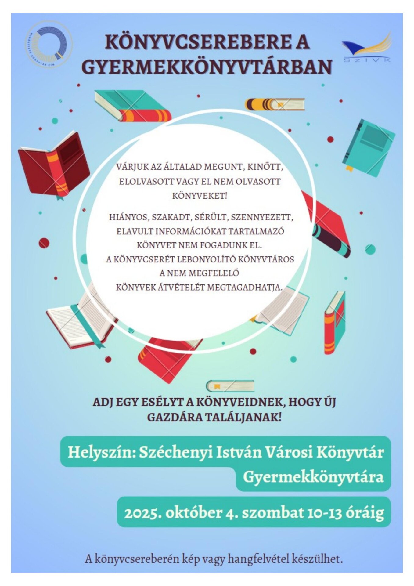 Könyvcsereberére várjuk az ifjúságot 2025. október 4-én.