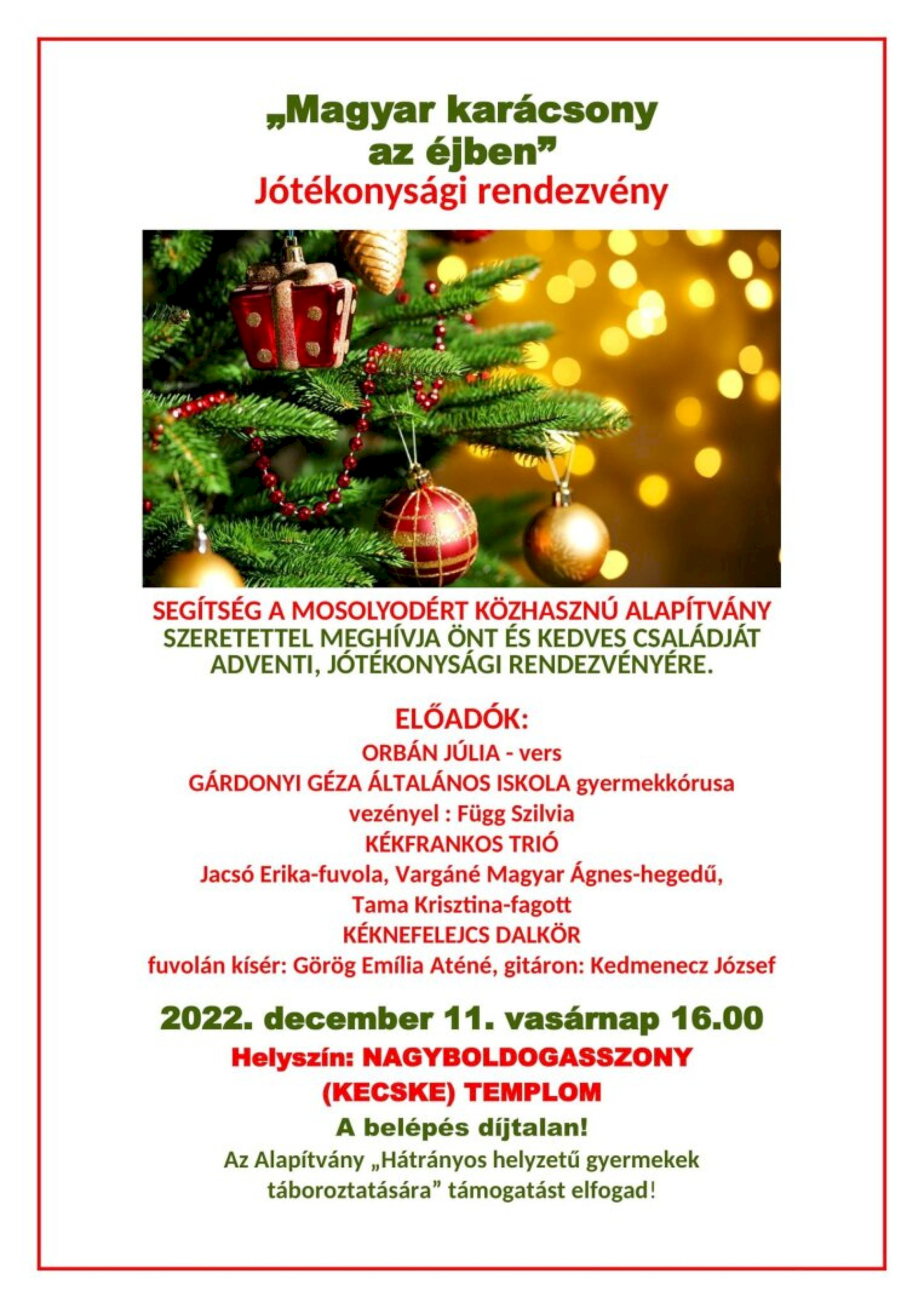 "Magyar karácsony az éjben" - Jótékonysági rendezvény
