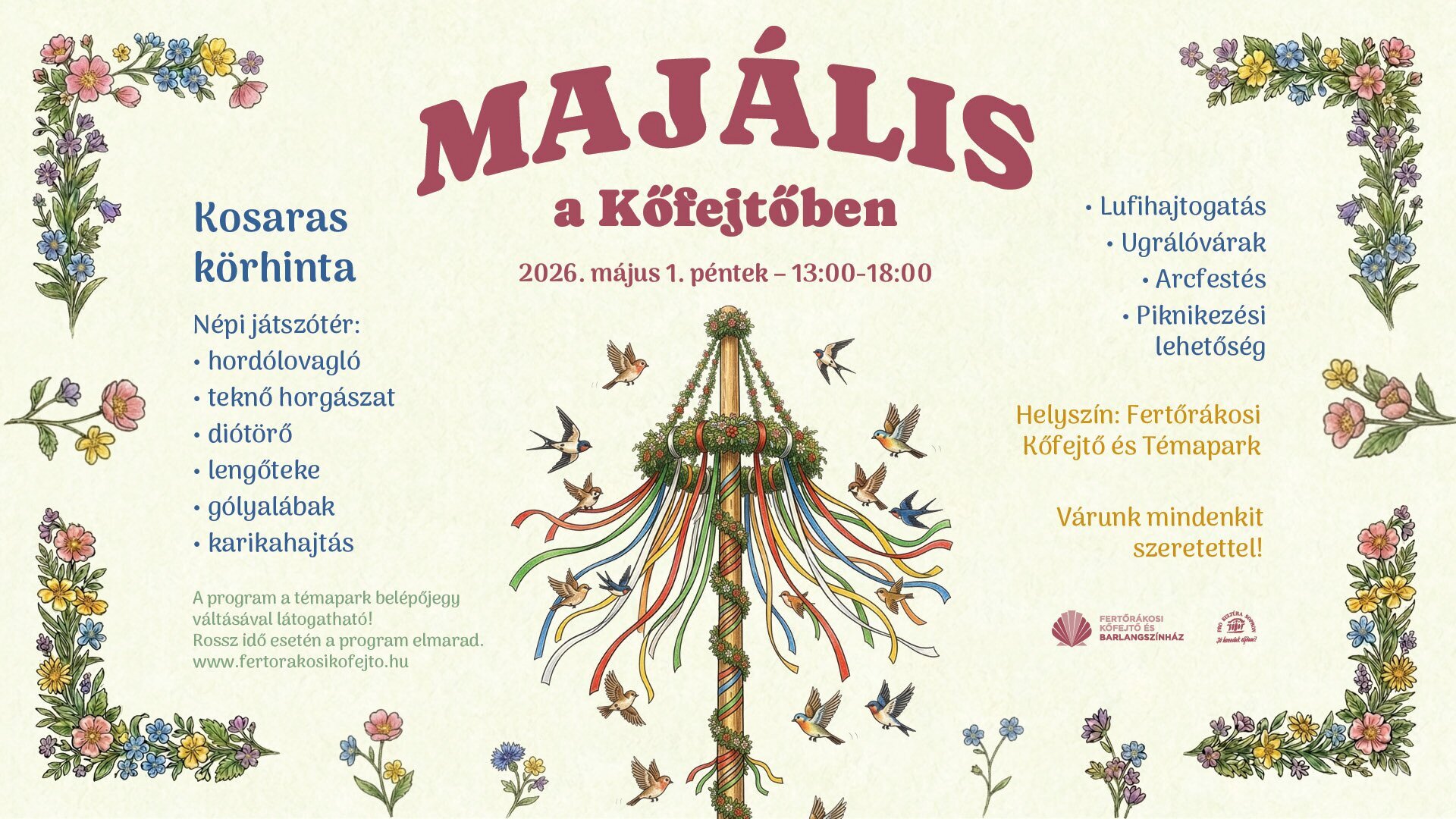 A Kőfejtő zöld környezetében életre kel a majális hangulata: nevetés, gyerekzsivaj és zene tölti meg a teret, a háttérben pedig forog a kosaras körhinta. A programok között népi játékok (hordólovagló, diótörő, lengőteke, egérvezető, teknő horgászat, bikaszarvra dobó, dobozdobáló, hintalovak, gólyalábak), ugrálóvárak, kézműves foglalkozás és arcfestés is várja a gyerekeket.