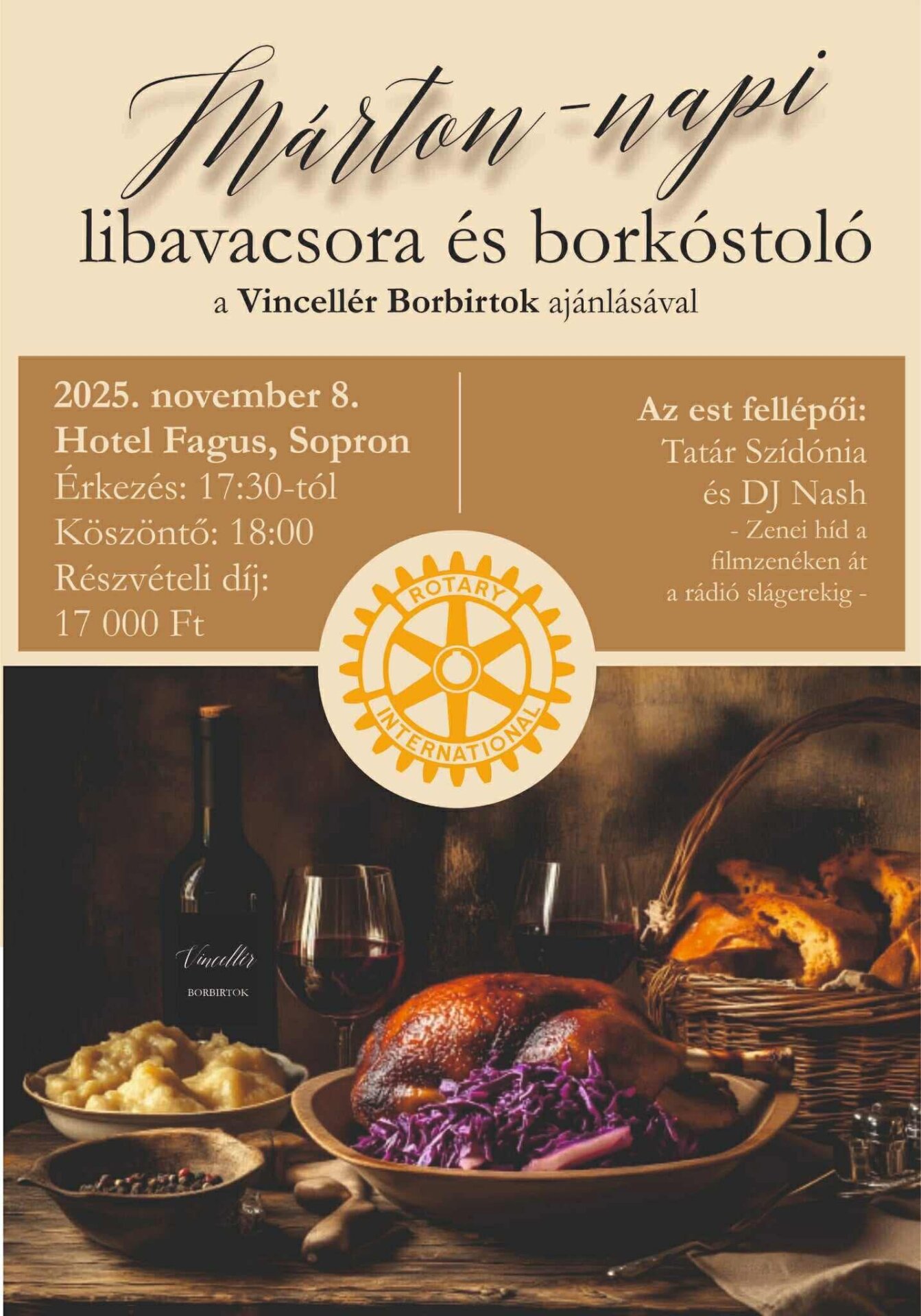 A Rotary Pannonia szokásos éves libavacsorája a Vincellér Borbirtok ajánlásával.