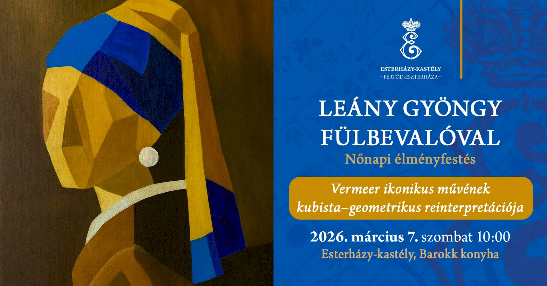 Szeretettel meghívjuk Önöket a fertődi Esterházy-kastély különleges nőnapi programjára.Az ünnepi alkalom keretében Johannes Vermeer világhírű mesterművét, a „Leány gyöngy fülbevalóval” című festményt értelmezzük újra.