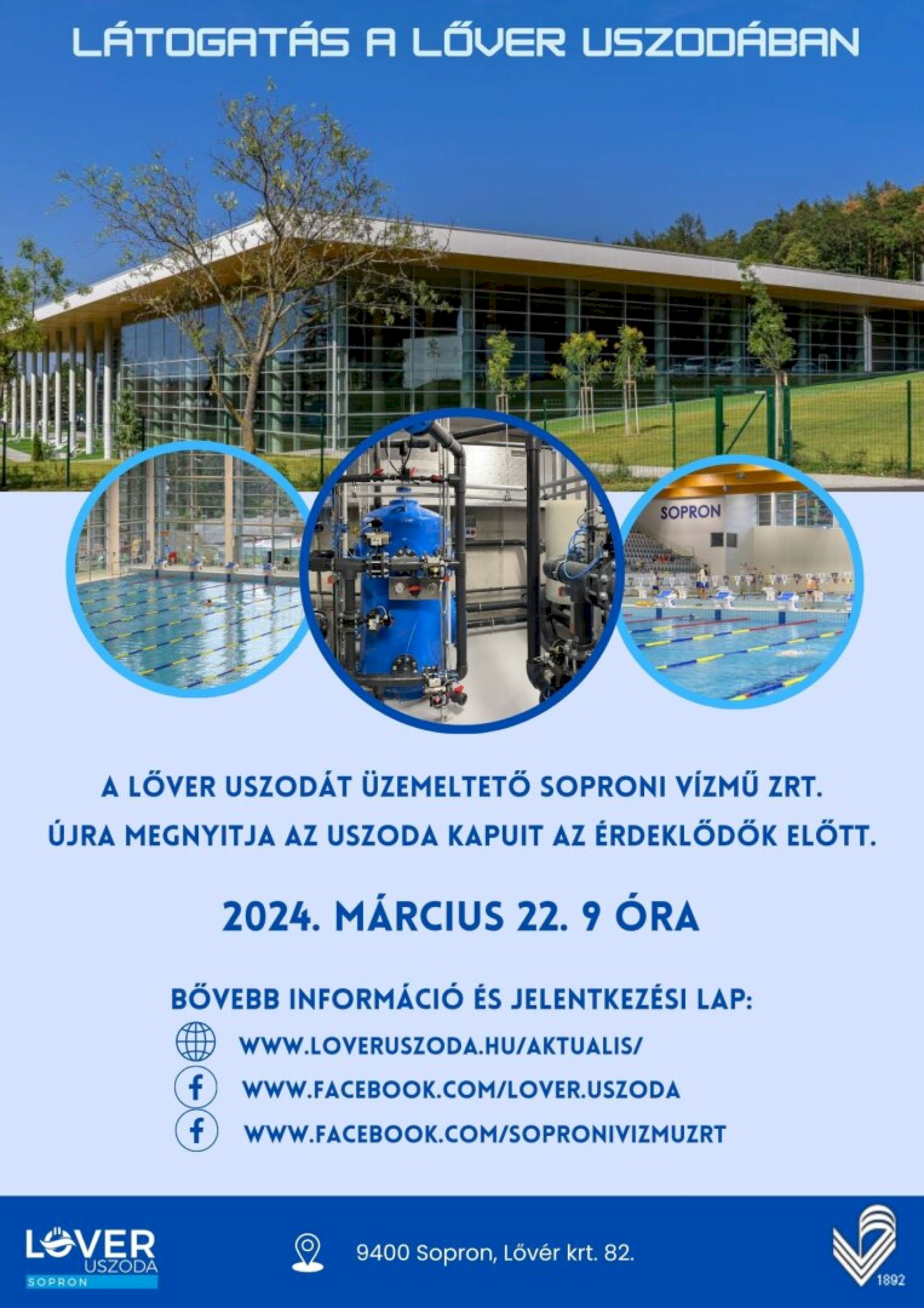 A Lőver uszodát üzemeltető Soproni Vízmű Zrt. a Víz Világnapja alkalmából újra megnyitja az uszoda kapuit az érdeklődők előtt.