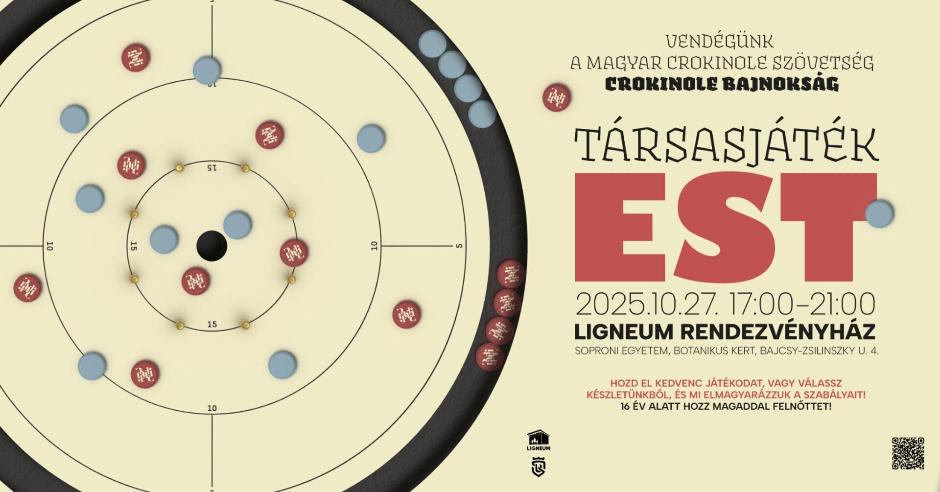 Gyere játszani október 27-én hétfőn 5 órától egy társasjáték estre a Ligneumba, a Soproni Egyetem botanikus kertjébe! A jó közösség és a szórakozás garantált! A részvétel INGYENES!