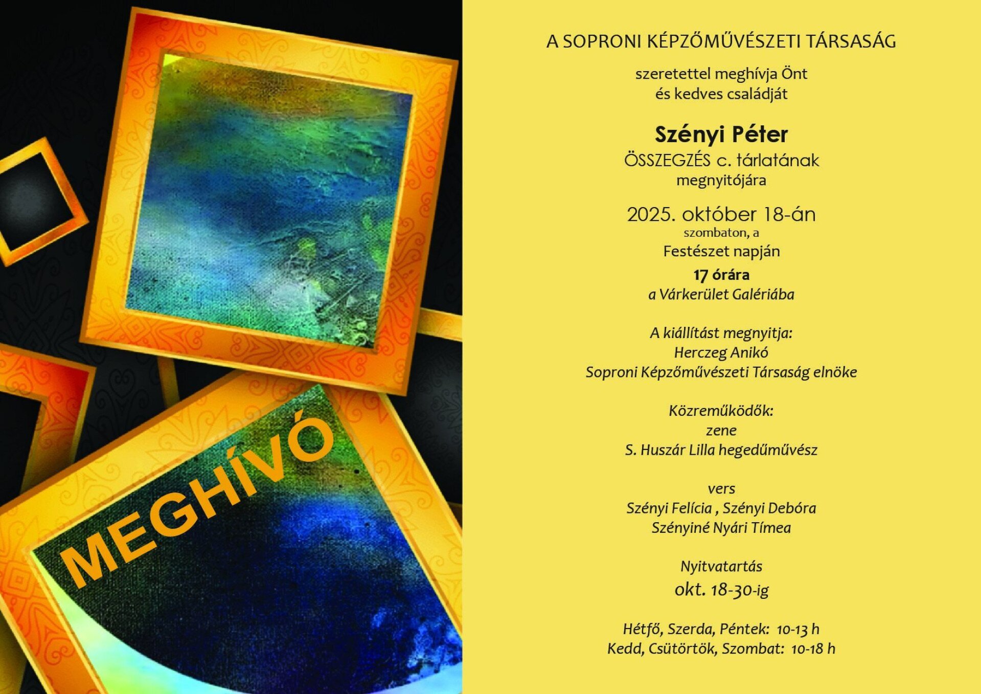 A Soproni Képzőművészeti Társaság szeretettel meghívja Önt és kedves családját tárlatának megnyitójára.