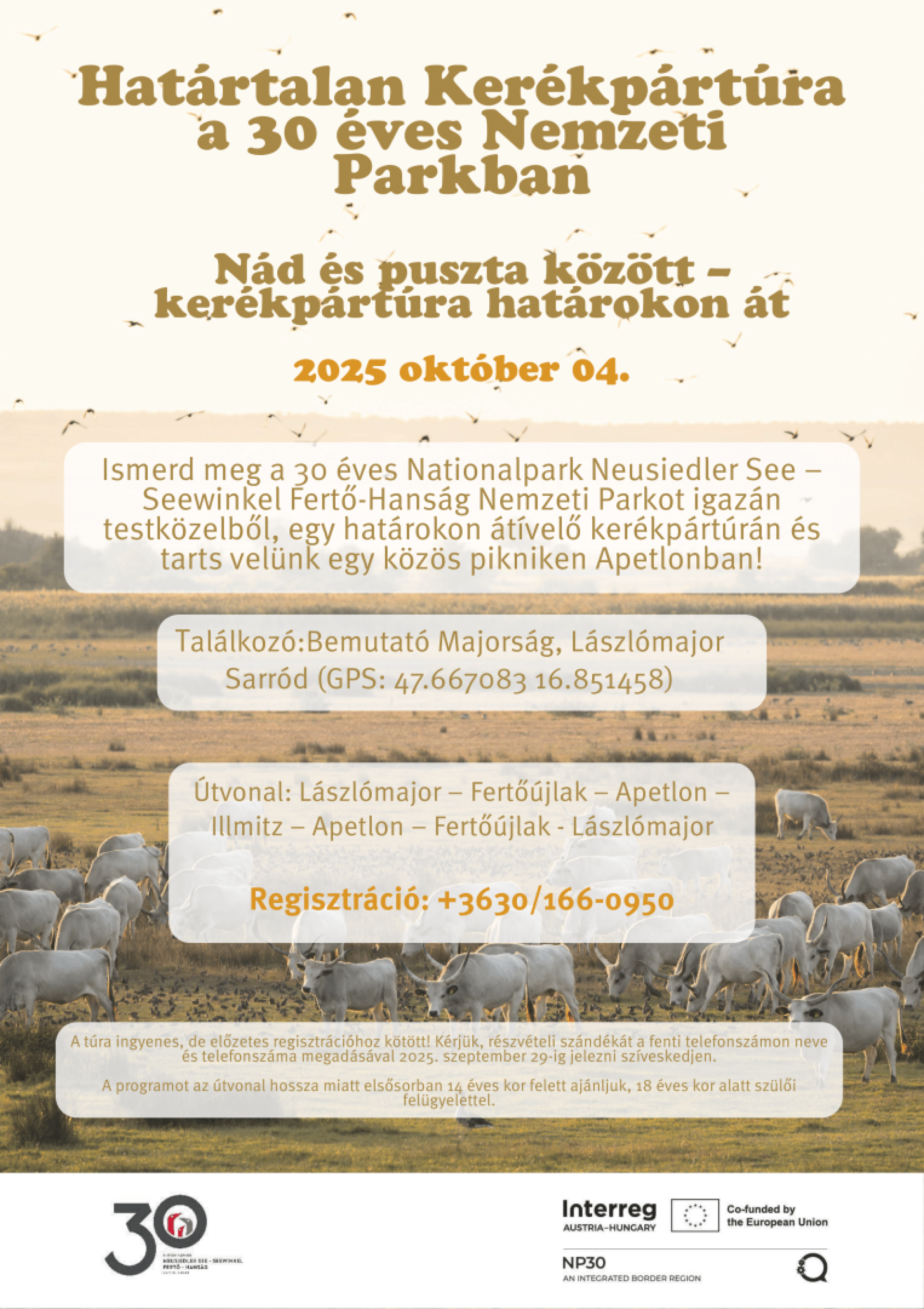 Tarts velünk egy határon átívelő kerékpártúrán és egy baráti pikniken Apetlonban. Gyere velünk, ha szeretnél egy napra kiszabadulni a rohanásból, és megismernéd a Fertő-táj különleges élőhelyeit!