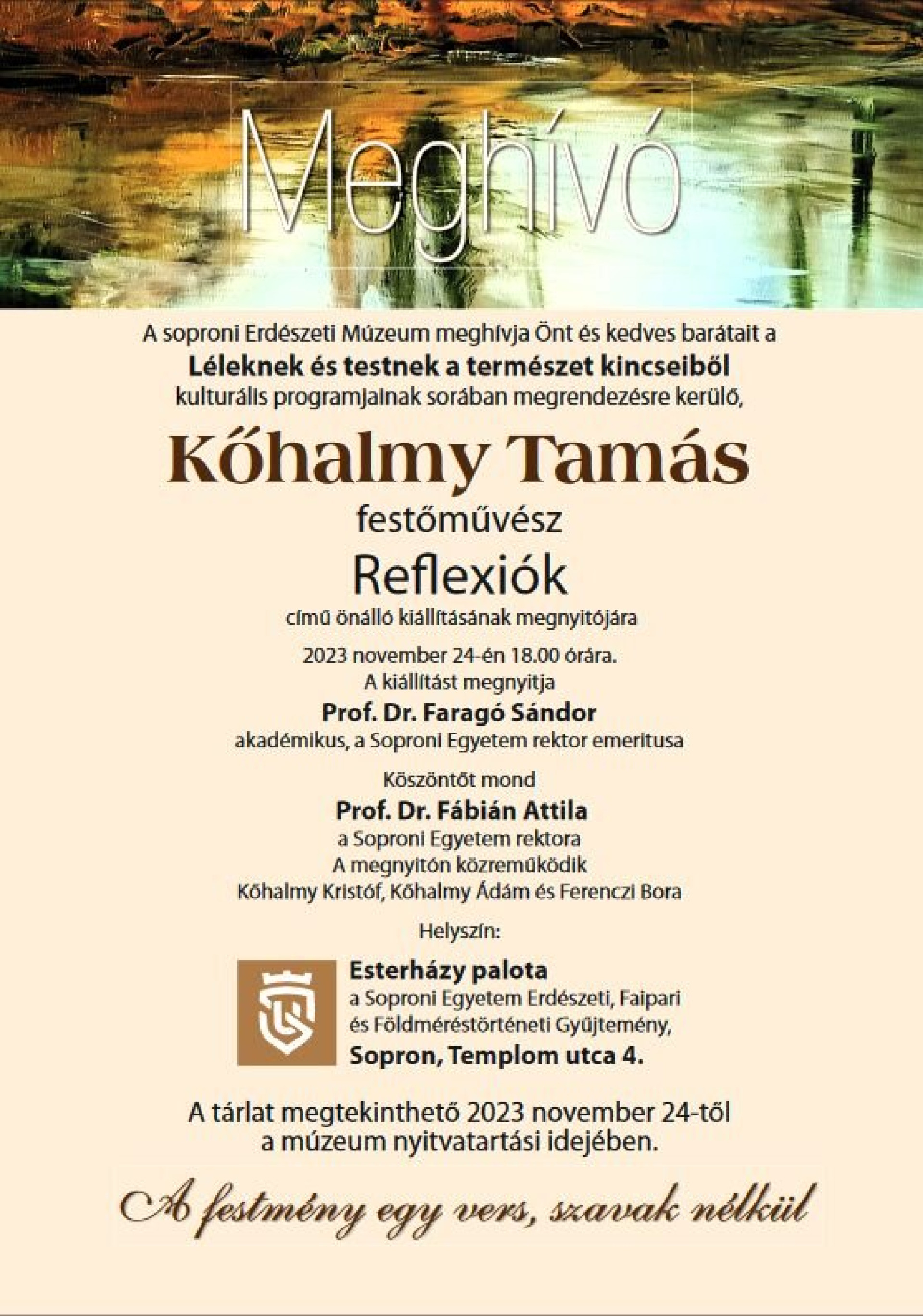Kőhalmy Tamás festőművész Reflexiók c. önálló kiállítása.