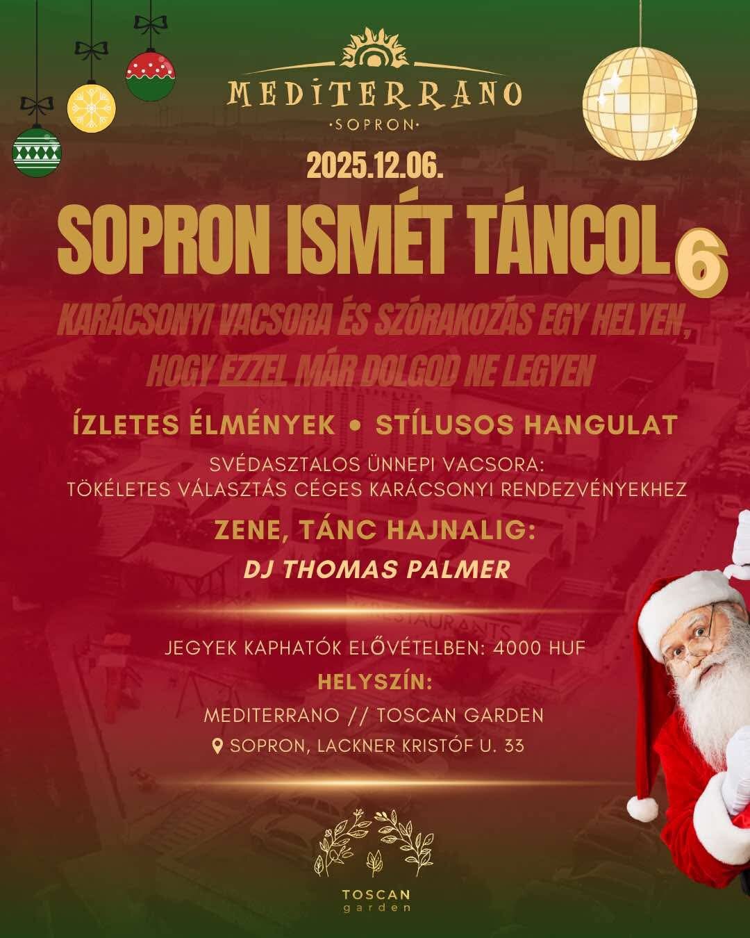 A zenés est mindazoknak szól akik igényes környezetben, a korosztályhoz szóló válogatott zenékre szeretnének felejthetetlen kikapcsolódást! Az időpont alkalmas arra is hogy cégek, vállalkozások karácsonyi partijukat ide szervezzék, mert az esemény mellé meleg vacsora lehetőséget is biztosítunk,kiváló büfé menü sorral, melyet ismét Bozsányi Raffael séf prezentál majd!