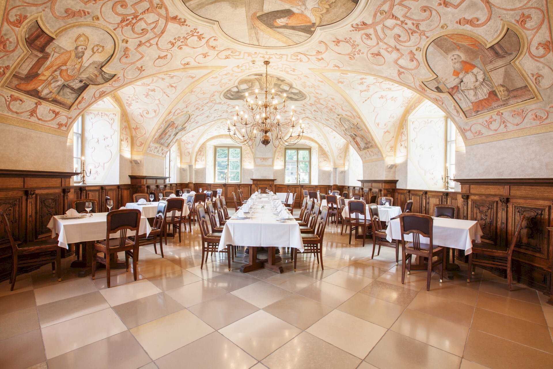 A kolostorban a szállóvendégek és az a’la carte vendégek ellátására önálló konyha és étterem működik. A betérők 18. század eleji freskók és stukkók lenyűgöző hátterében költhetik el 21. századi technológiával készülő ételeinket.