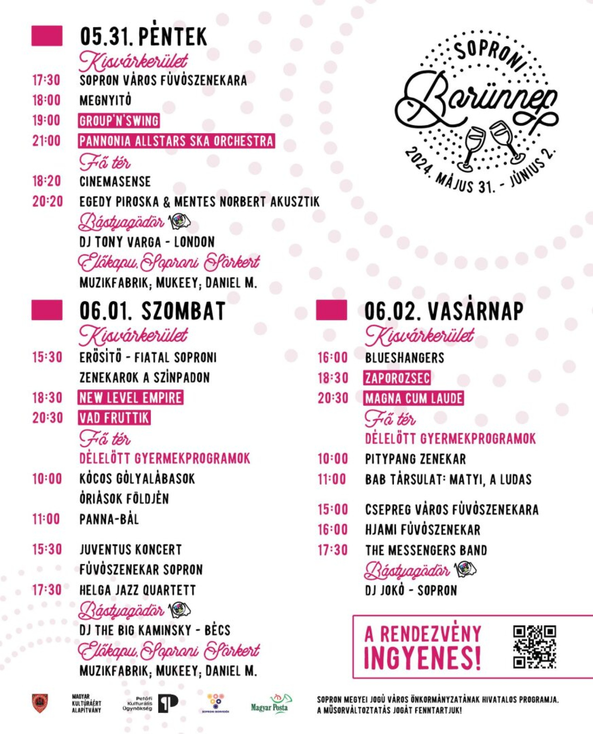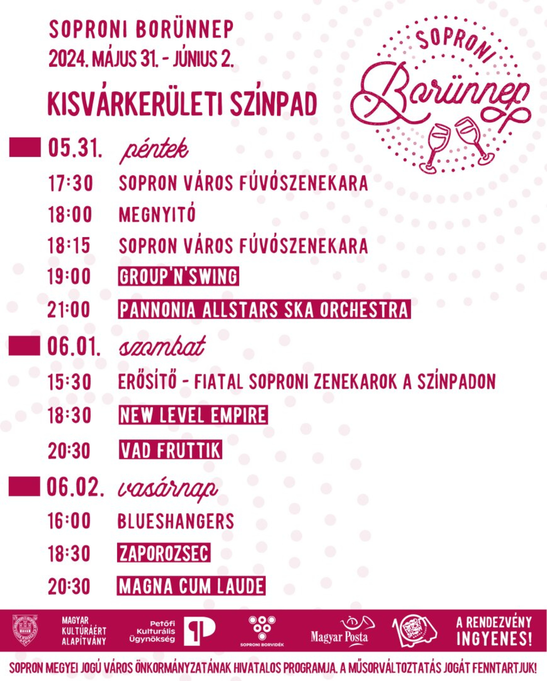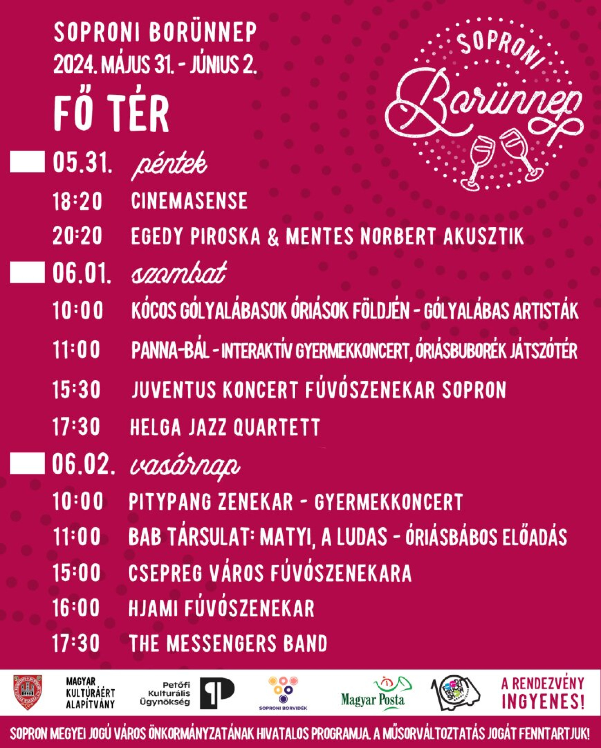 A Soproni Borünnep hosszú évtizedek óta a szőlőtermesztés és a helyi borkészítés hagyományai előtt tiszteleg. Ez 2024-ben sem lesz másképpen, hiszen ismét megrendezzük városunk legnagyobb ingyenes szabadtéri rendezvényét!
