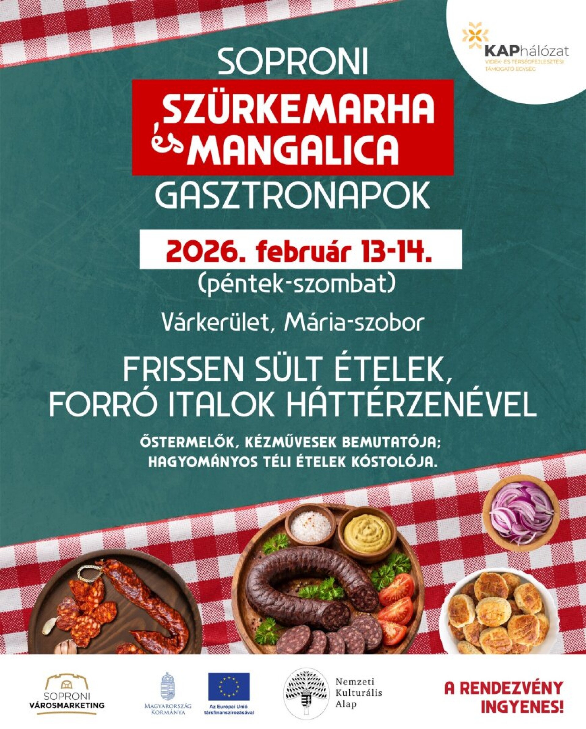 A farsangi időszak utolsó hétvégéjén Sopronban is megmutatjuk a tél "legfinomabb" oldalát! Szeretettel várunk mindenkit a Soproni Szürkemarha és Mangalica Gasztronapokra, ahol a hűvösebbnek ígérkező napokat frissen sült finomságok, forró italok, kézműves vásár és (fedett sátor alatt) háttérzene teszi felejthetetlenné.