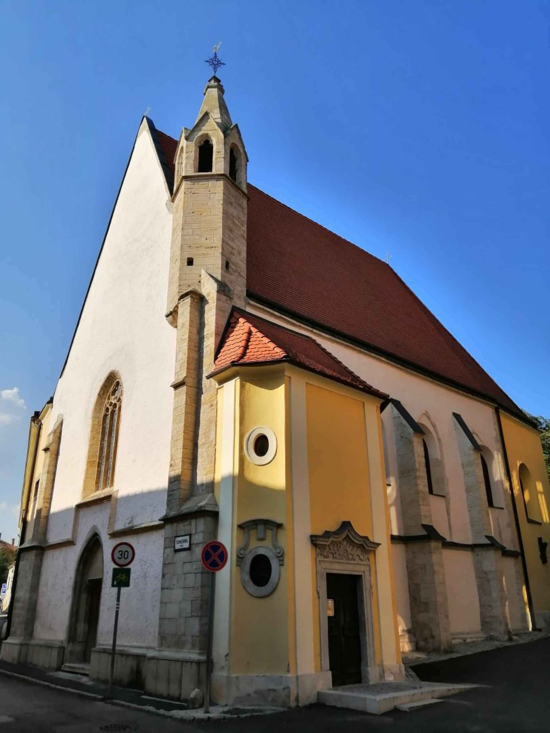 A kívül gótikus, belül barokk templom a történeti belváros Ikva-patakon túli részén áll. Valószínűleg a johanniták alapították, a kórházkápolnájuk lehetett, amely az ispotályukkal szemben épült.