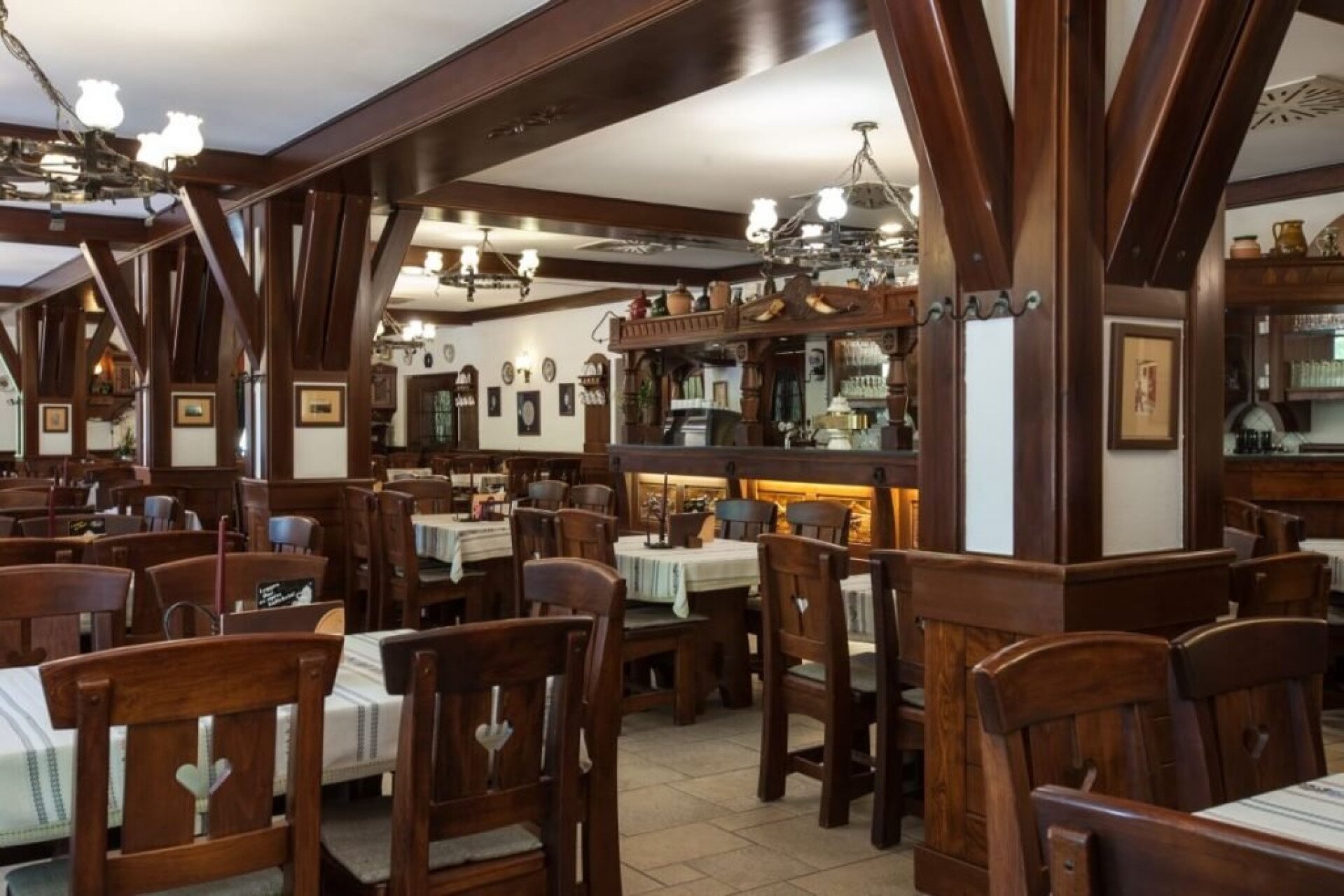 Az étterem tágas helyiségei, különterme csoportos rendezvények, esküvők, céges- és családi rendezvények kiváló helyszíne. A ház specialitásai a vadételek, ezek közül is a “Vadászlakoma”, valamint a “Ropogós kacsacomb”.