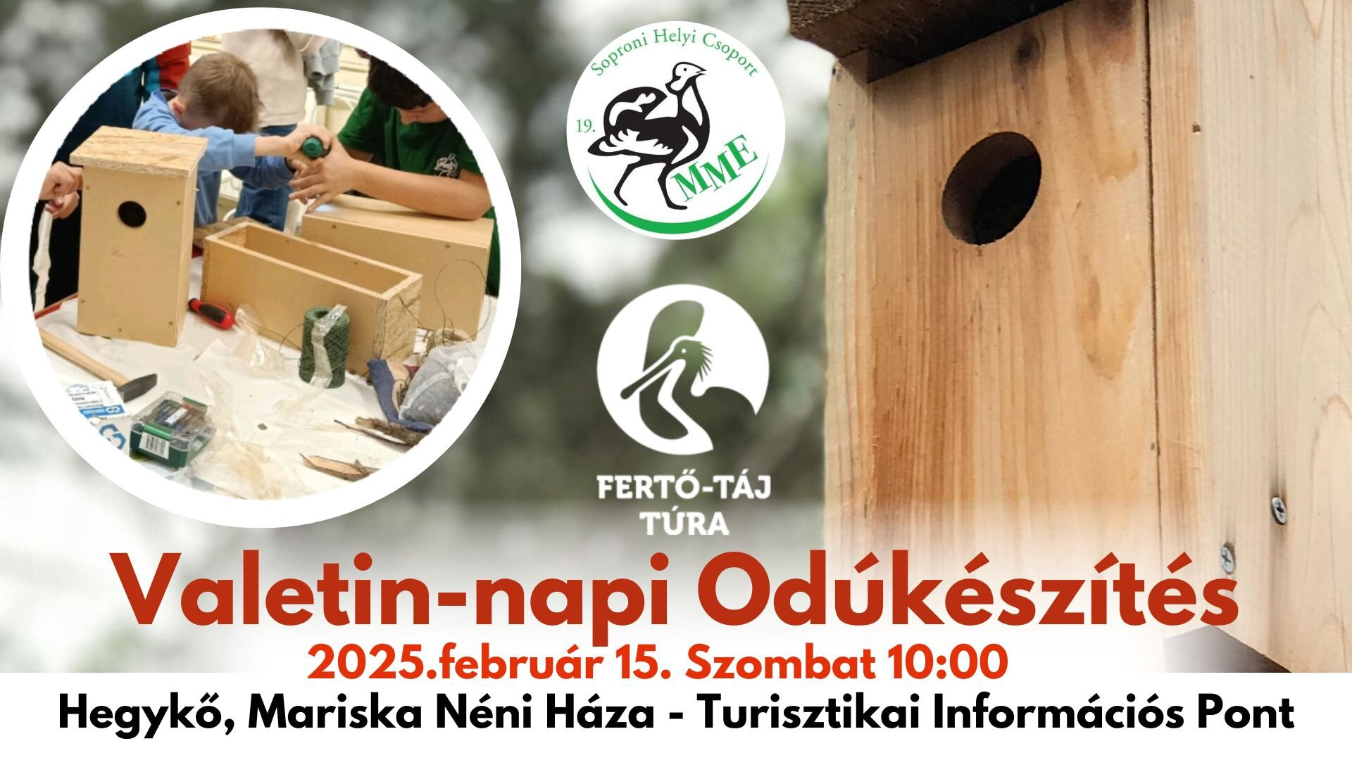 Ezért arra gondoltunk a Magyar Madártani és Természetvédelmi Egyesület, Soproni Helyi Csoportjával, hogy szeretnénk Hegykő és a környékbeli madárkedvelőkkel odúkat készíteni. Ez alkalomból Pellinger Attila a HCs Elnöke tart egy kisebb előadást, majd nekiállunk odút készíteni. Az elkészült odúkat haza is lehet vinni, viszont a Mariska Néni Háza kertjébe is helyeznénk ki illetve ahova még a MME csoport gondolja. ( Ez majd ott derül ki.)