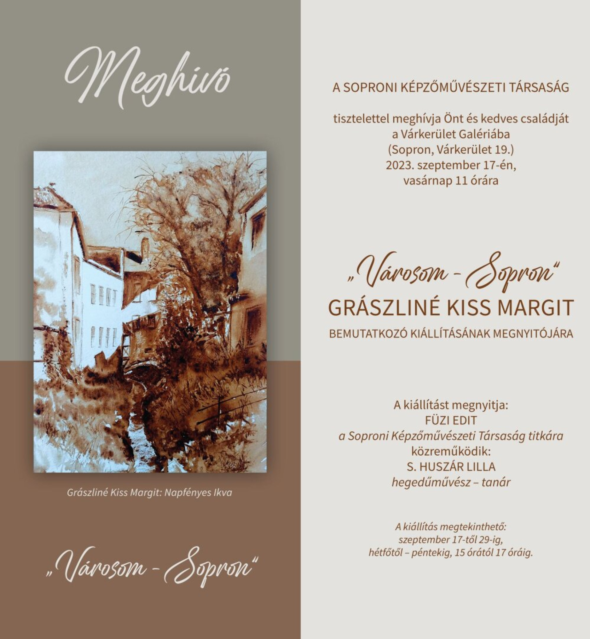 A kiállítás megtekinthető szeptember 17-29. között, hétfőtől péntekig 15-17 óra között a Várkerület Galériában (Sopron, Várkerület 19.) Szeretettel várunk minden érdeklődőt!